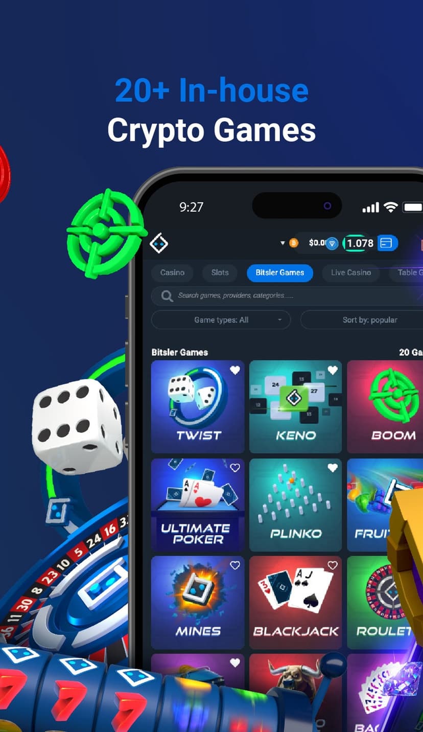 Bitsler.com Casino в Telegram открывает доступ к азартным развлечениям и ставкам: более 4000 игр (рулетка, слоты, блэкджек, кости и др.), а также пари на спортивные и киберспортивные события. Платформа работает с 2015 года и сделана для быстрой работы с криптовалютами, включая TONcoin.