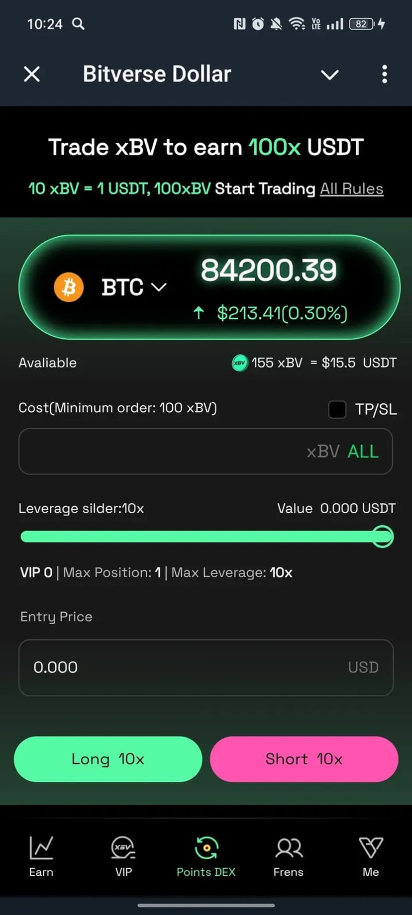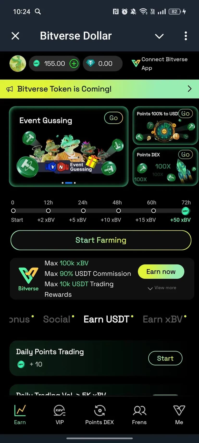 Bitverse Dollar — сервис обмена накопленных баллов (points) на криптовалюту USDT с геймифицированной механикой. При совершении обмена итоговая сумма в USDT определяется случайным множителем, который может увеличить выплату до 100×.