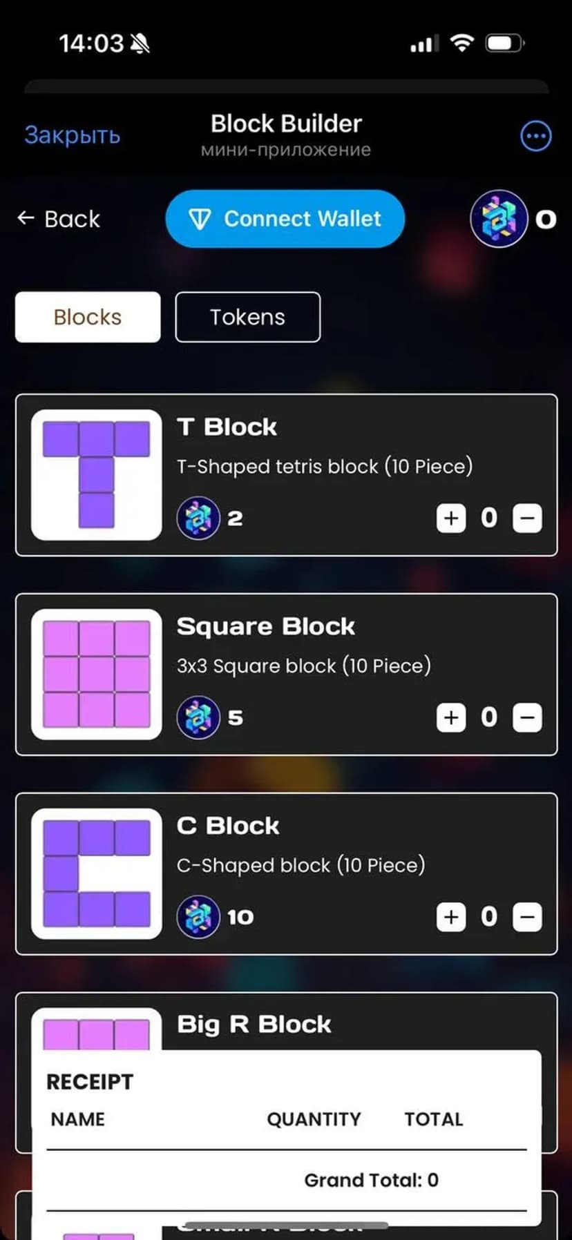 *Нажимая "Открыть в Telegram", вы перейдете к приложению Block Builder в мессенджере Telegram