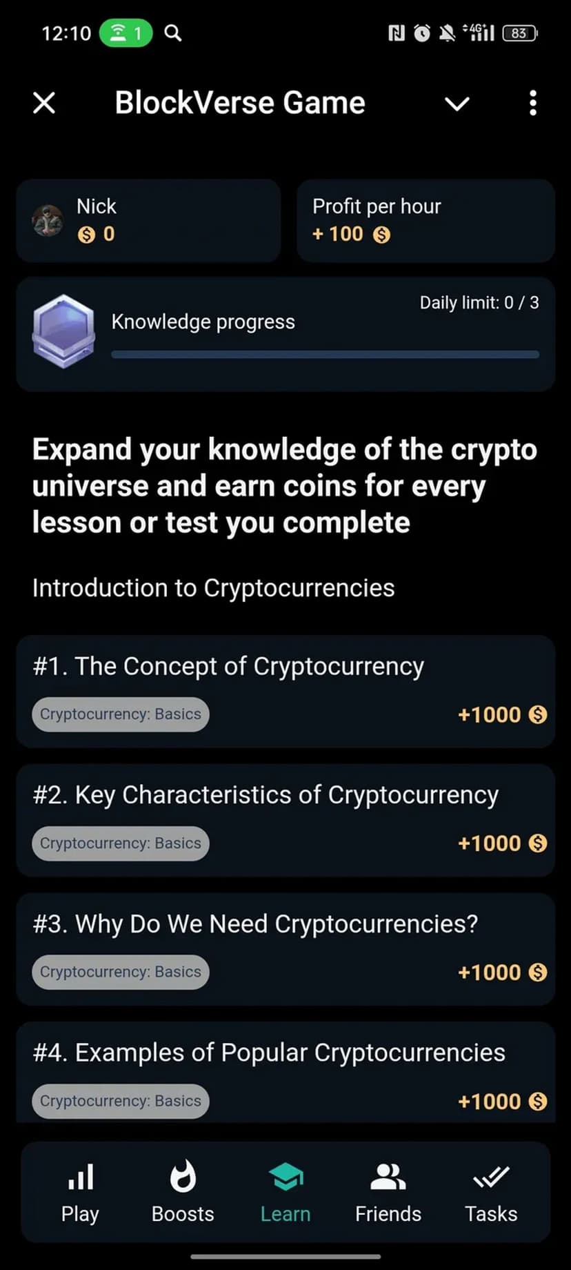 Приложение работает через Telegram Web Apps и не требует дополнительного ПО — достаточно авторизации в Telegram. В основе механик лежат стандартные игровые решения (tap-to-earn, квесты, накопление очков), при этом основной акцент сделан на образовательной составляющей, а не на пассивном сборе баллов.