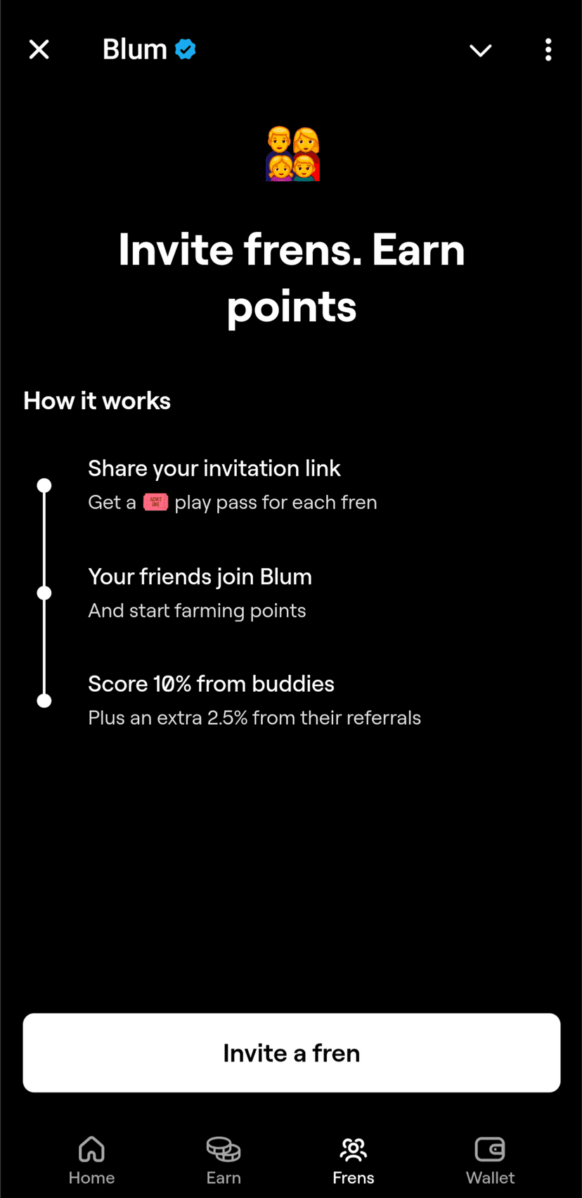 Blum — мини‑приложение в Telegram, позволяющее накапливать Blum Points через фарм, мини‑игры, выполнение заданий и приглашения.