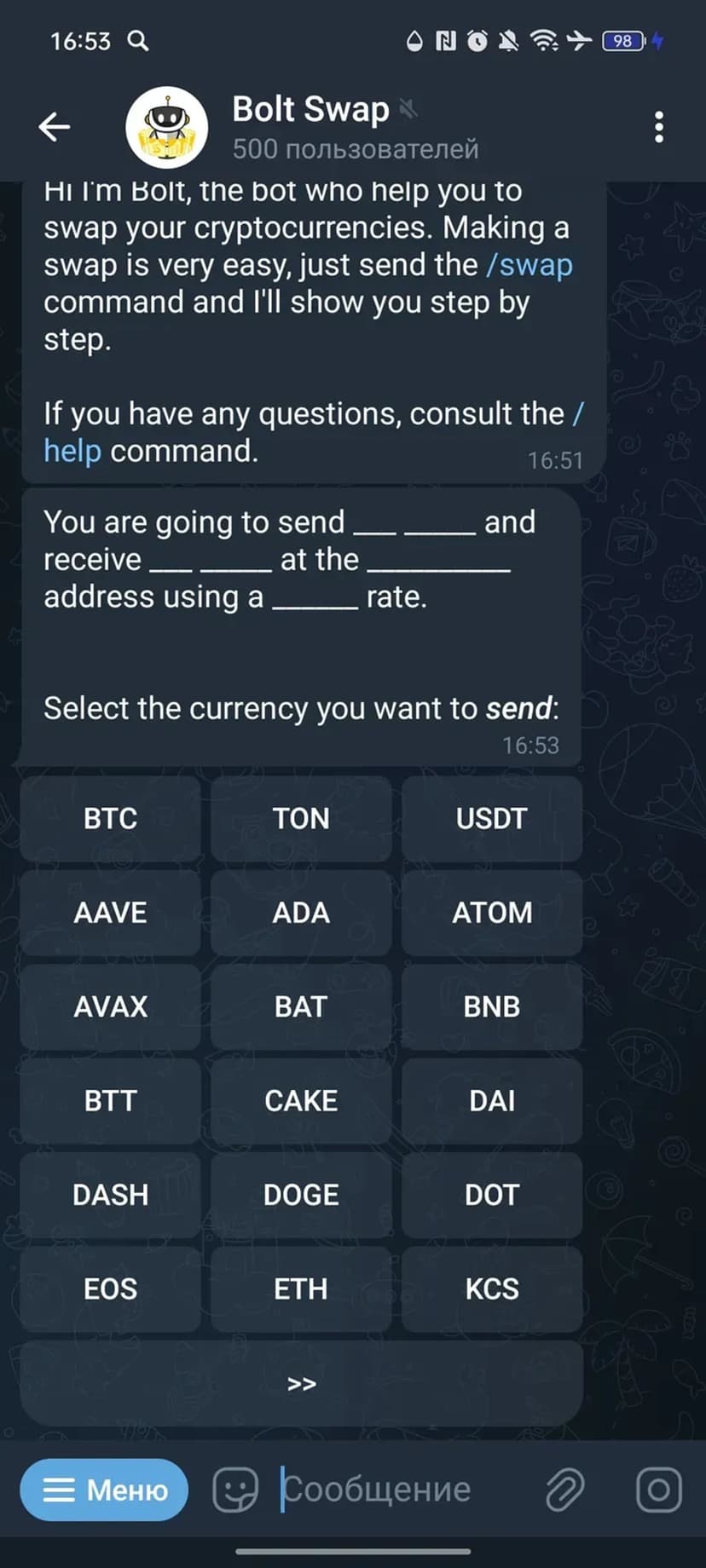 *Нажимая "Открыть в Telegram", вы перейдете к приложению Bolt Swap в мессенджере Telegram