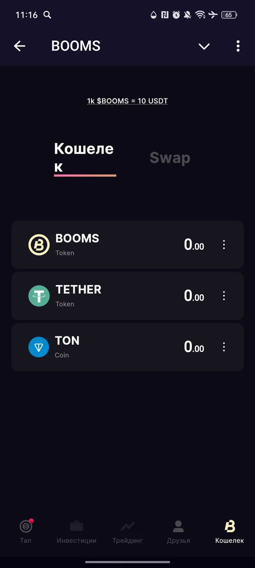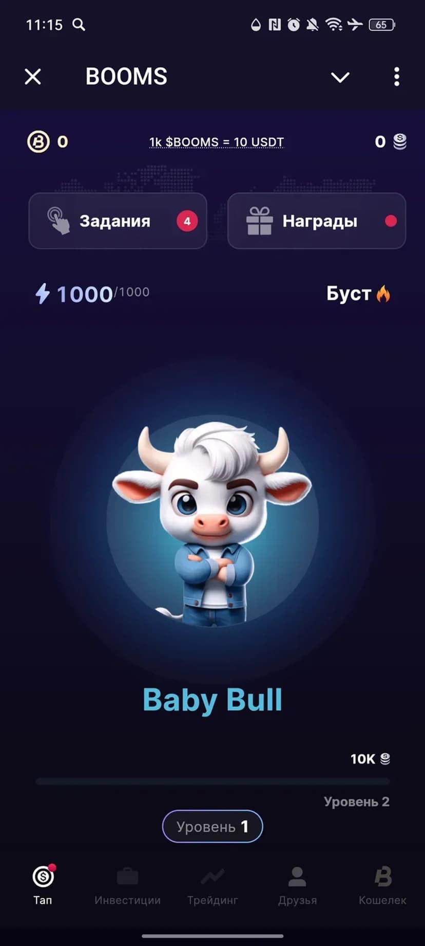 BOOMS Game — экономическая симуляция в формате мини‑приложения. Пользователю предлагается развивать виртуальную финансовую империю и получать внутриигровую валюту BOOMS.