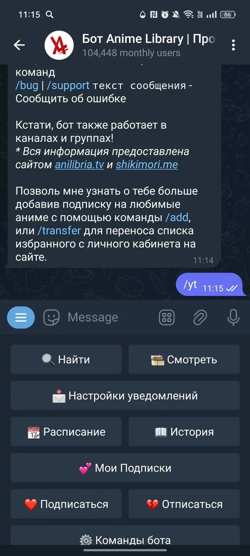 Бот Anime Library позволяет находить тайтлы, просматривать эпизоды и скачивать аниме прямо в Telegram. Предоставляются прямые ссылки на просмотр и загрузку, что сокращает количество переходов между сервисами.