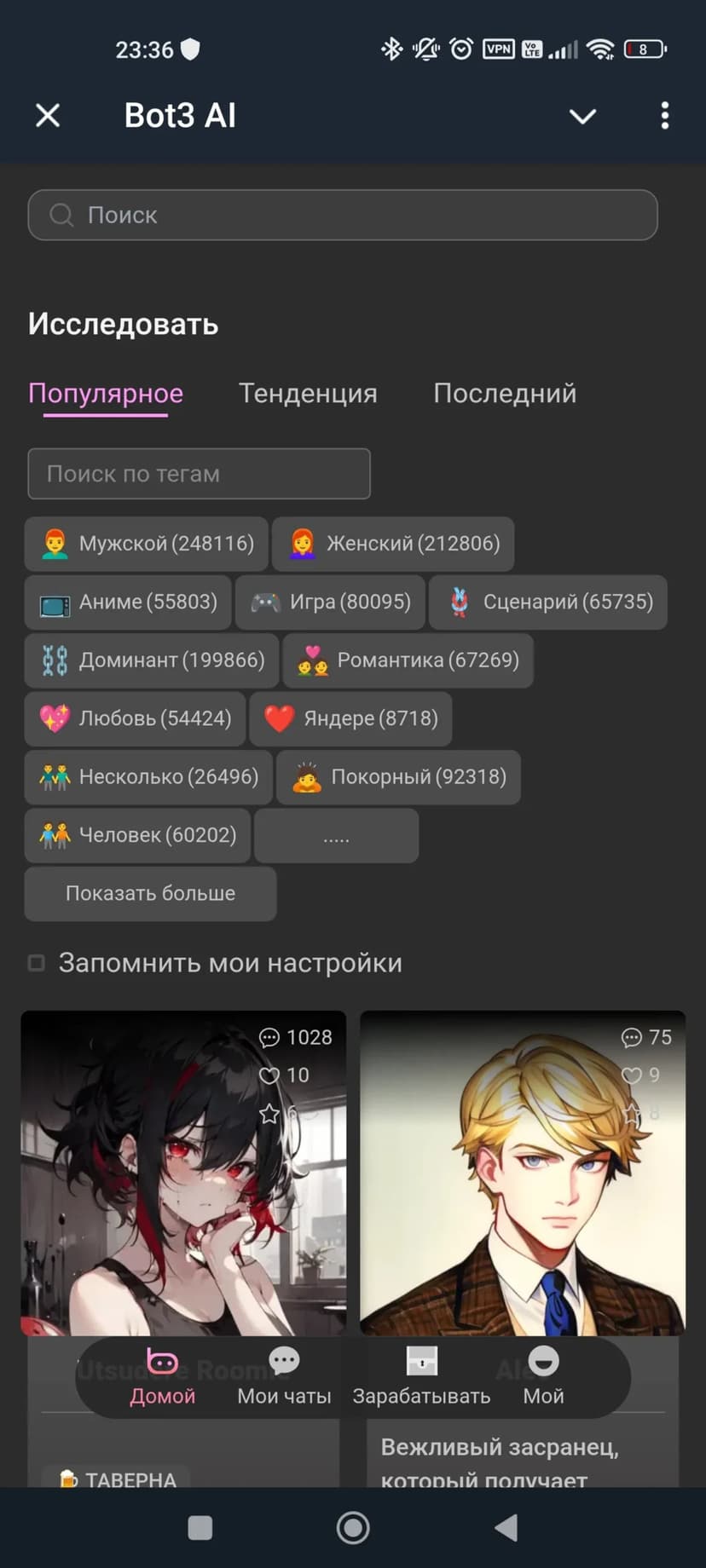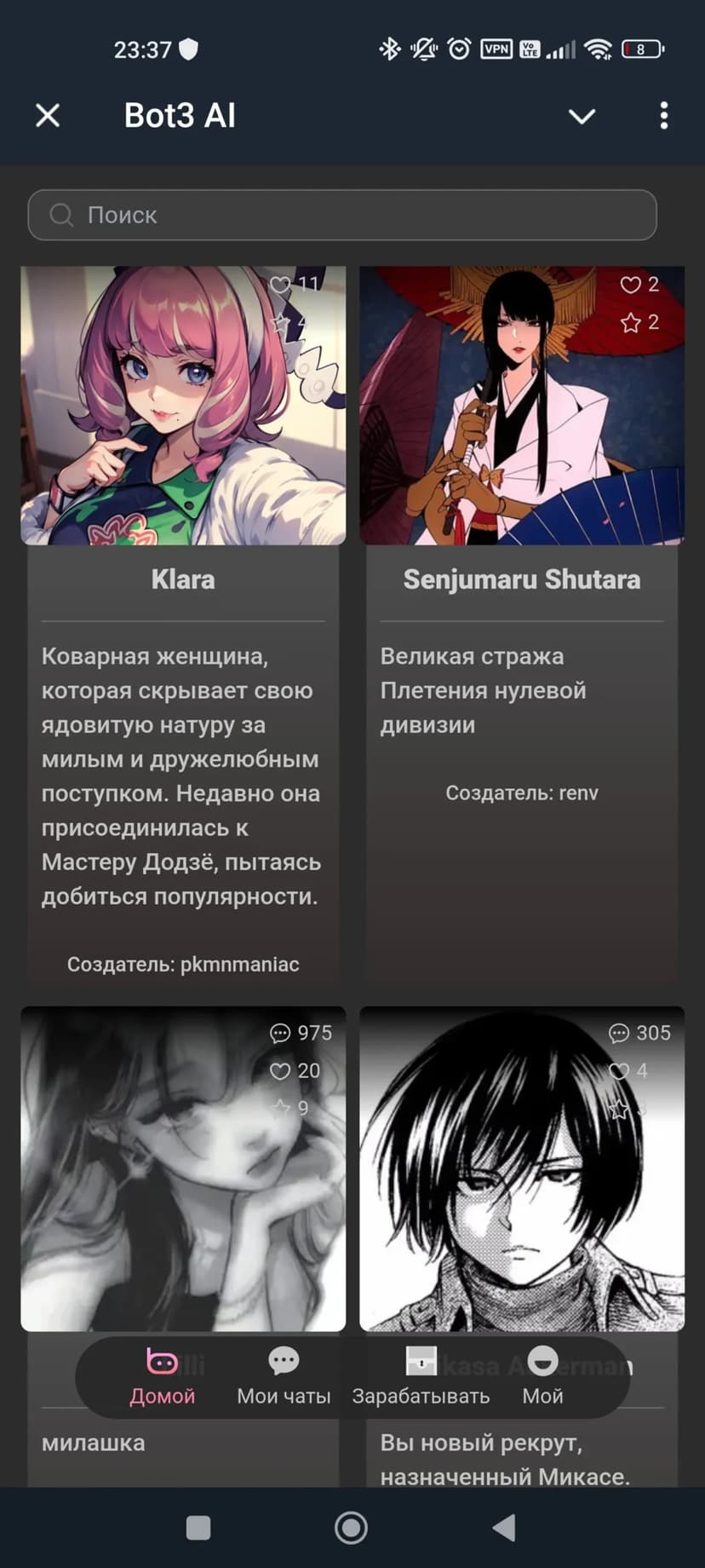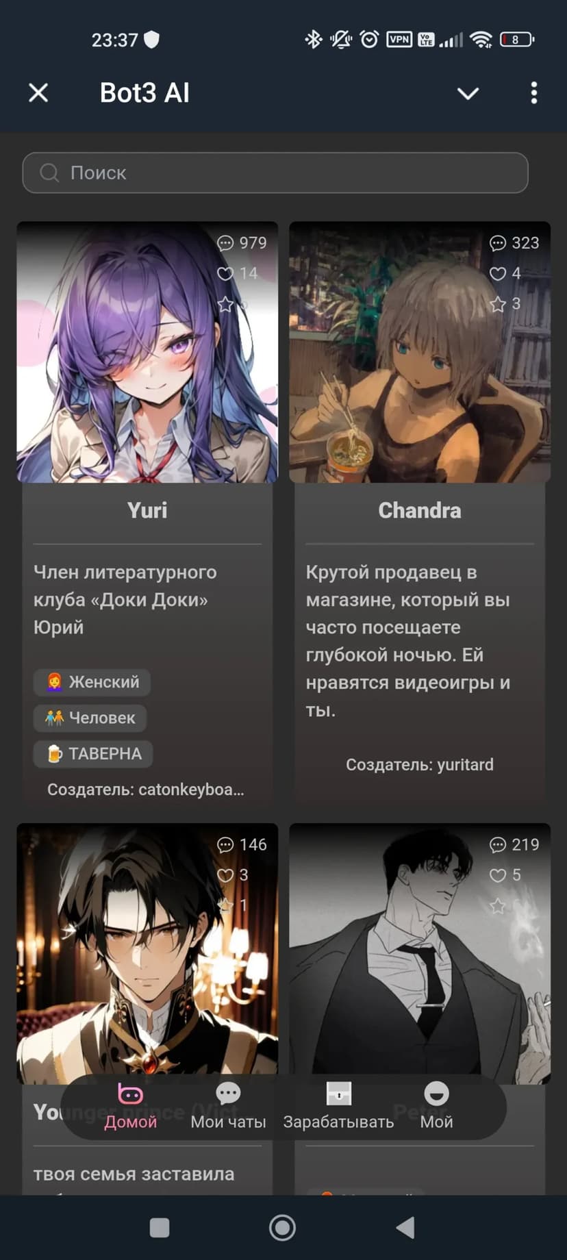 - Режимы работы: чат с готовым агентом, создание бота, выполнение заданий и участие в творческих сценариях.