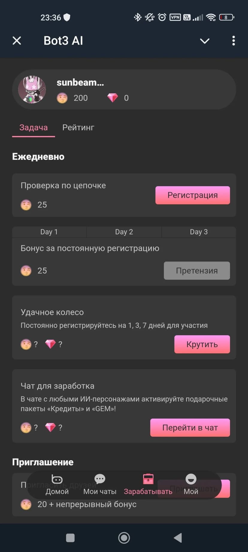 Bot3 AI — мини‑приложение на блокчейне TON с реализацией Chat‑to‑Earn: общайтесь с AI‑агентами, создавайте собственных ботов и получайте криптовалютные вознаграждения за активность.