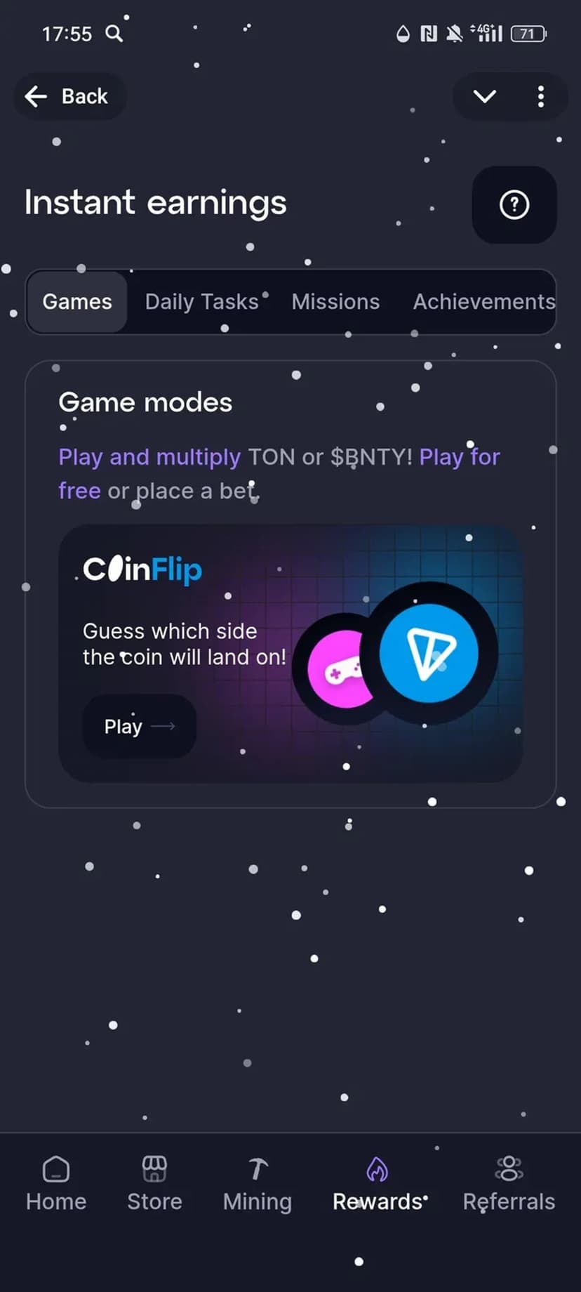 Подходит новичкам для безопасного знакомства с экосистемой TON, а также опытным пользователям, желающим протестировать игровой майнинг или накопить небольшие бонусы.