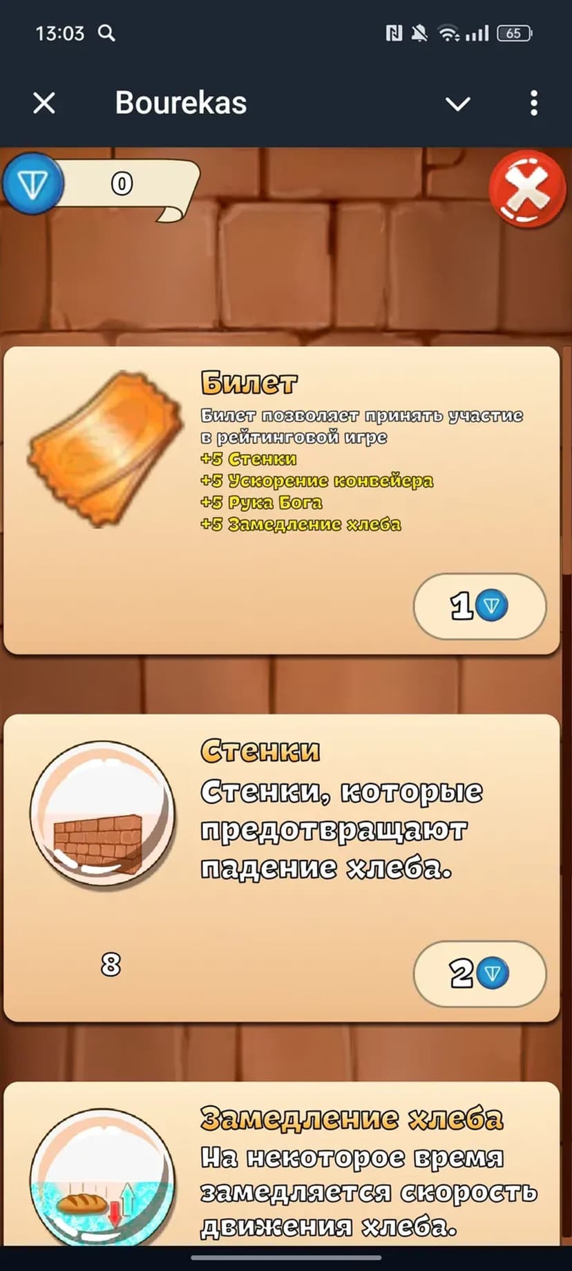 Bourekas — казуальная мини-игра, в которой игроки соревнуются в умении аккуратно укладывать хлеб на движущуюся ленту. Задача простая: разместить как можно больше хлеба, набрать очки и занять место в глобальном рейтинге; по итогам соревнований лучшие игроки получают призы.