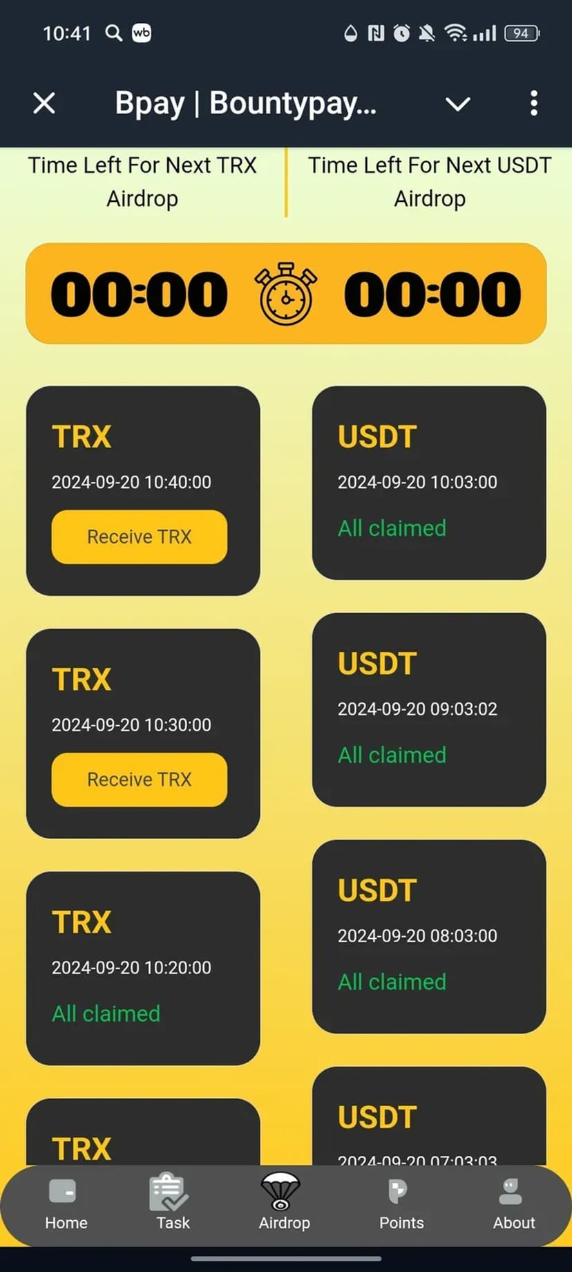 - Бесплатные airdrop каждые 10 минут с дополнительным бонусом ежечасно.