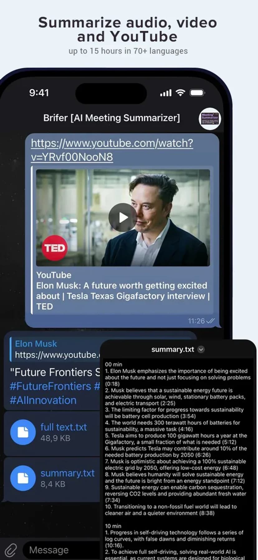 *Нажимая "Открыть в Telegram", вы перейдете к приложению Briefer [AI Meeting Summarizer] в мессенджере Telegram