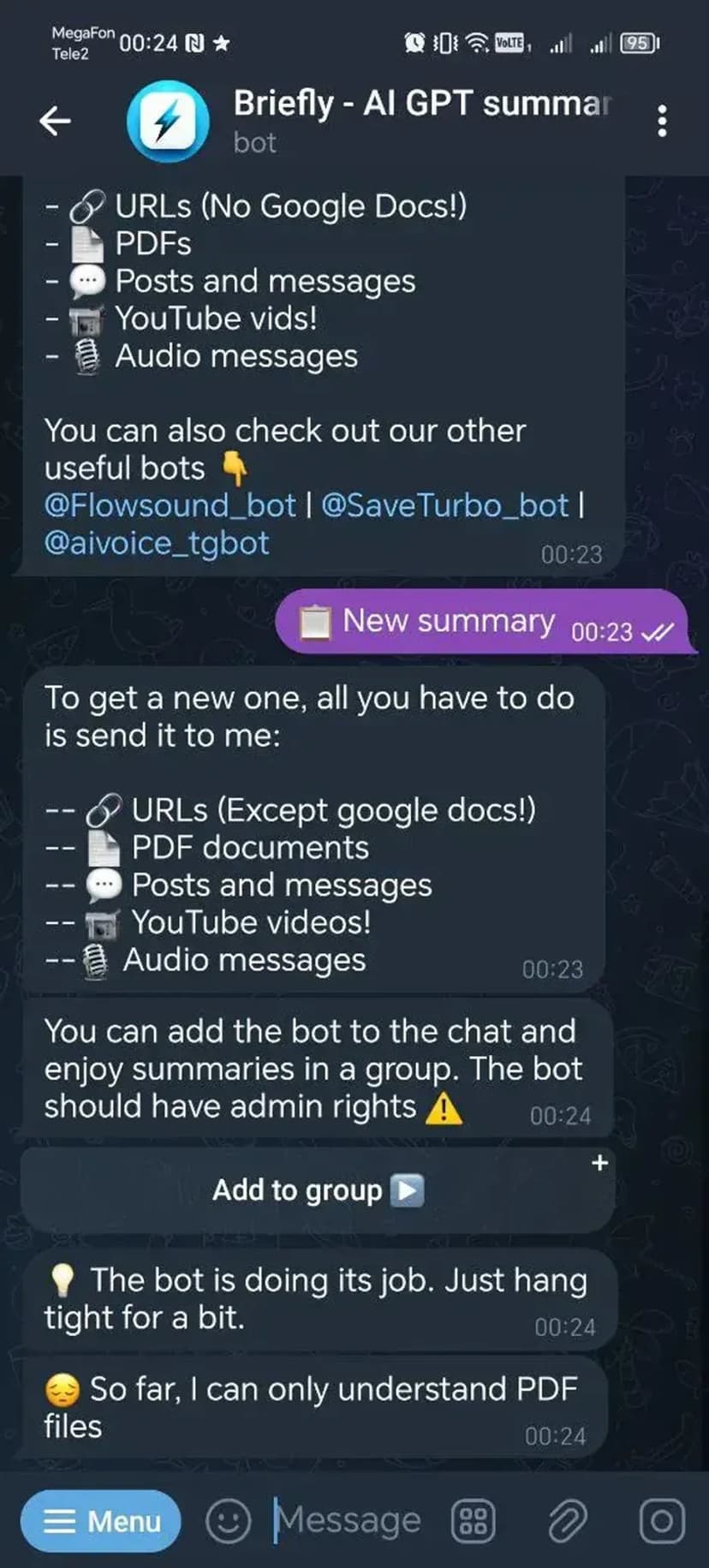 Briefly - AI GPT summary of any videos, PDFs, articles π