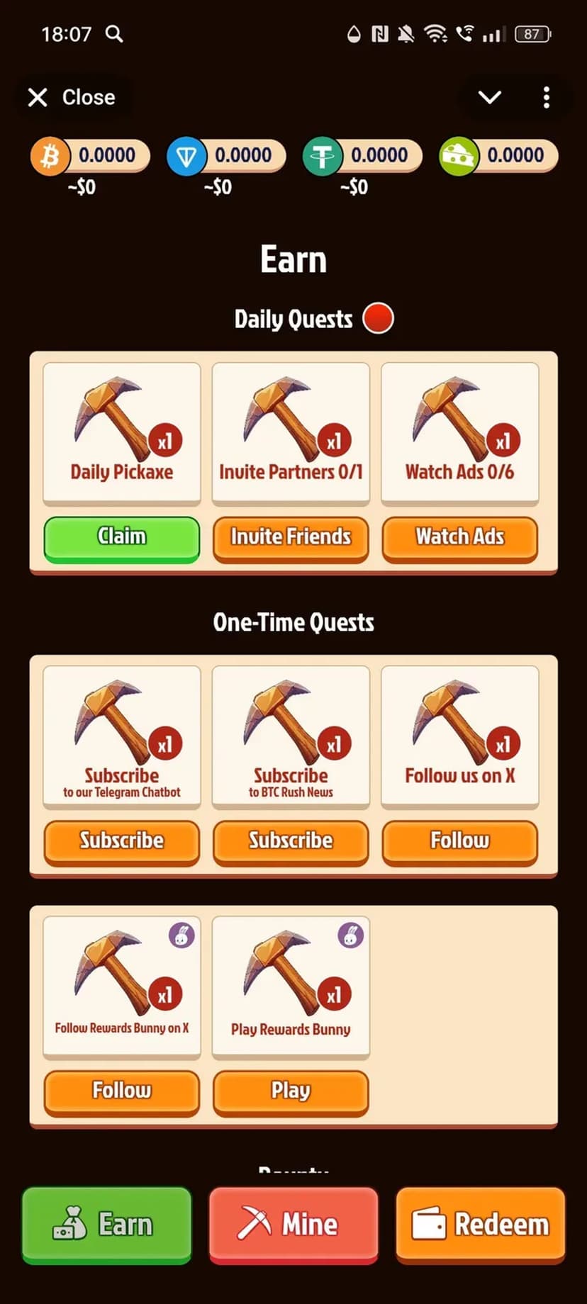 - Механика: выполнение заданий и игровых действий, ориентированных на BTC.