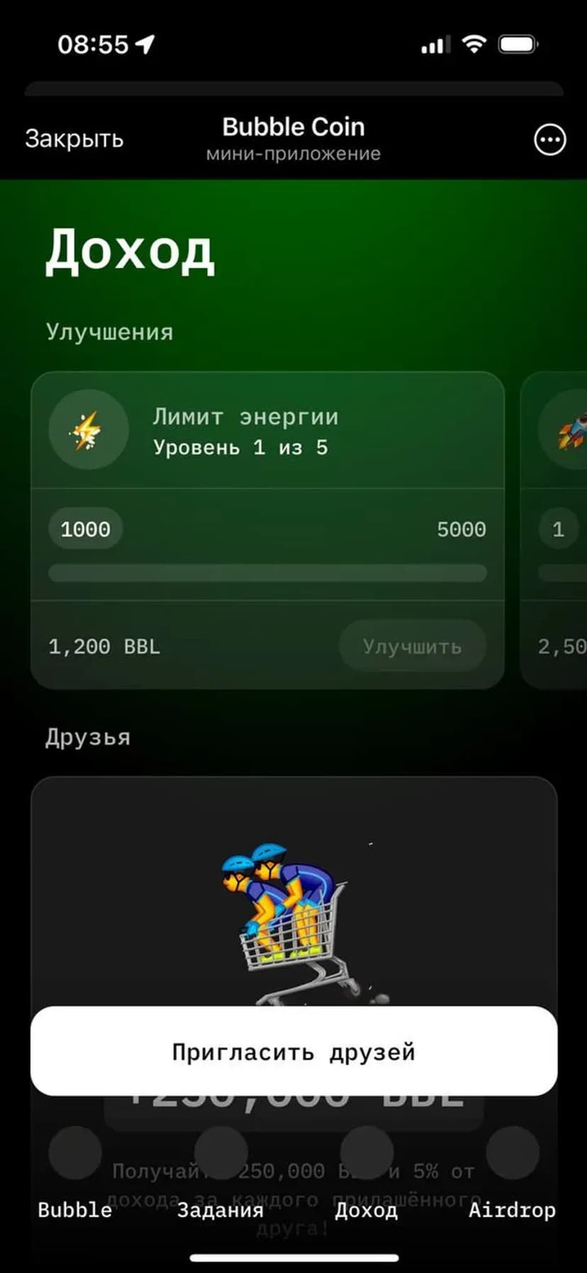 Зарабатывайте Bubble Coin, выполняя квесты, приглашая друзей и участвуя в сообществе.
