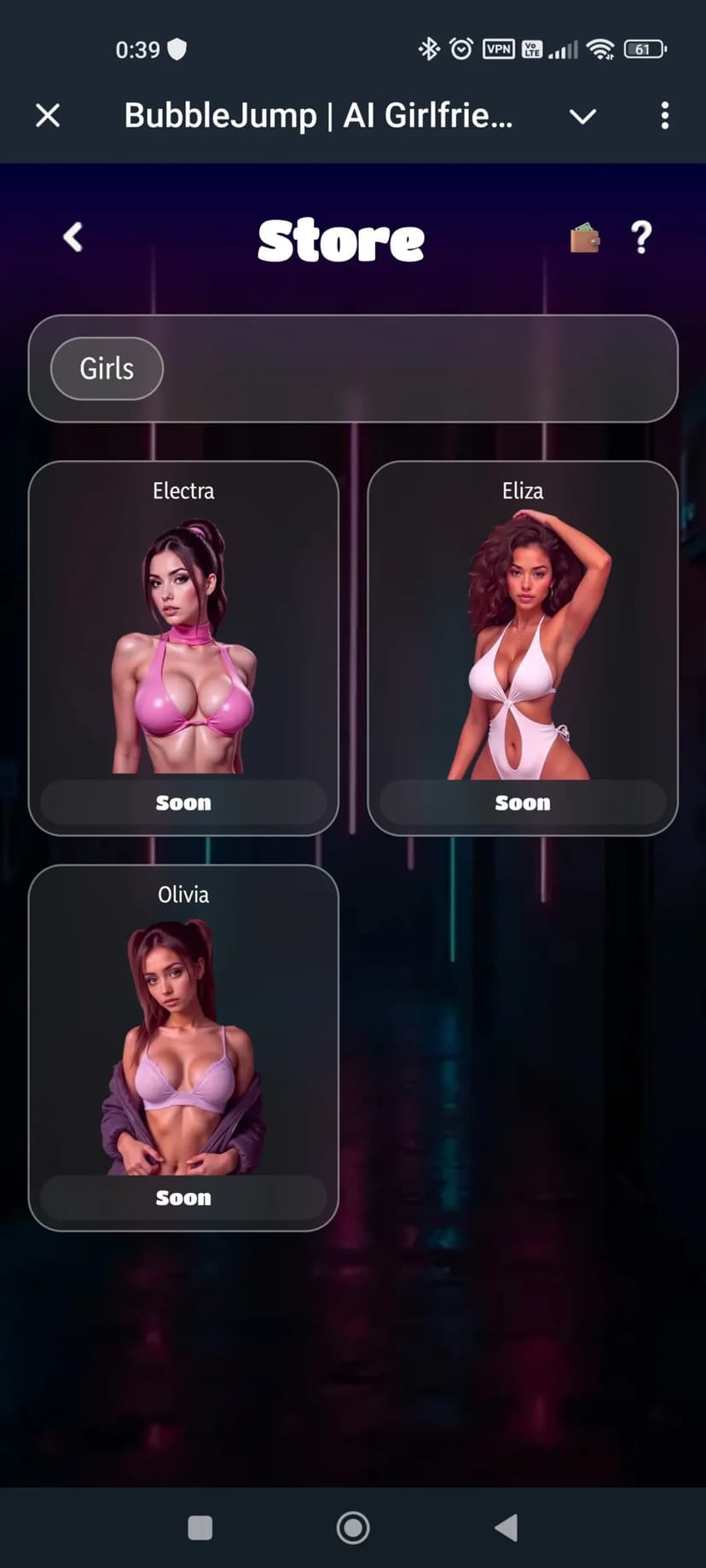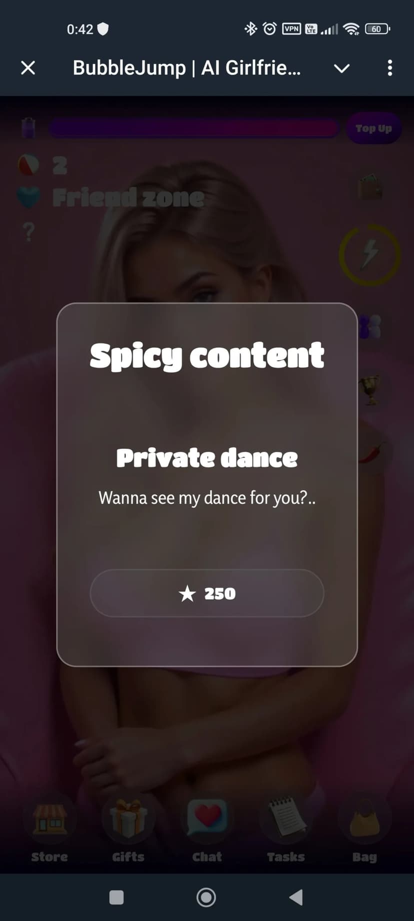 - Как играть: выберите одну из AI-подруг и общайтесь в чате, выполняя миссии и повышая уровень отношений — от дружбы до романтических стадий. Взрослый контент открывается постепенно (с уровня 3, после примерно 10 часов игры).