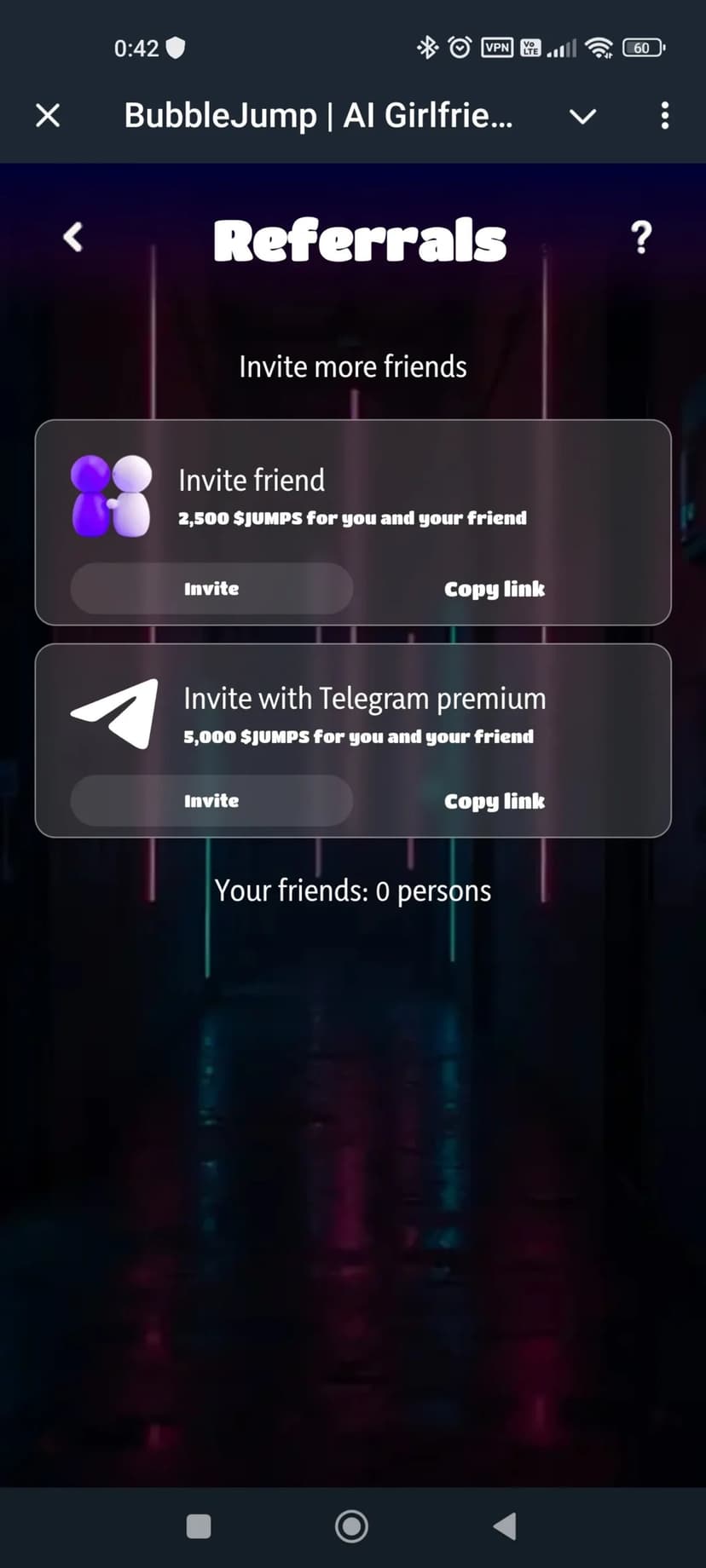 - Реферальная программа: за каждого приглашённого даётся 100 $JUMPS и 5% от его заработка.