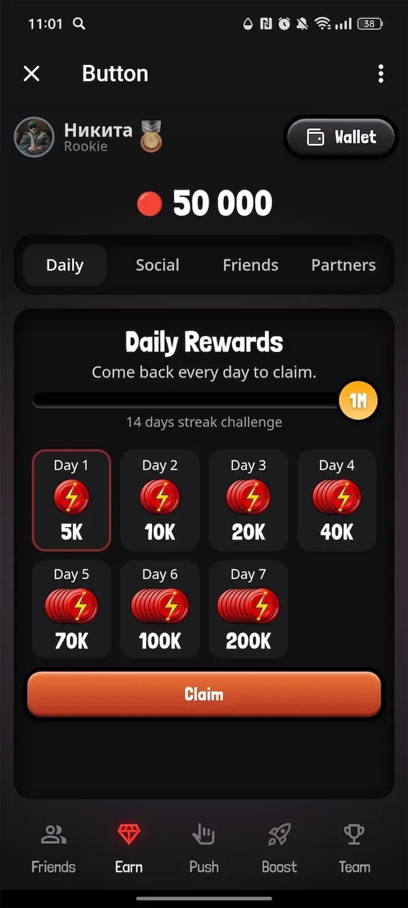 Button — криптовалютный геймифицированный бот с предельно простой механикой: выбор одной из двух кнопок (красной или зелёной) и нажатие для получения очков.