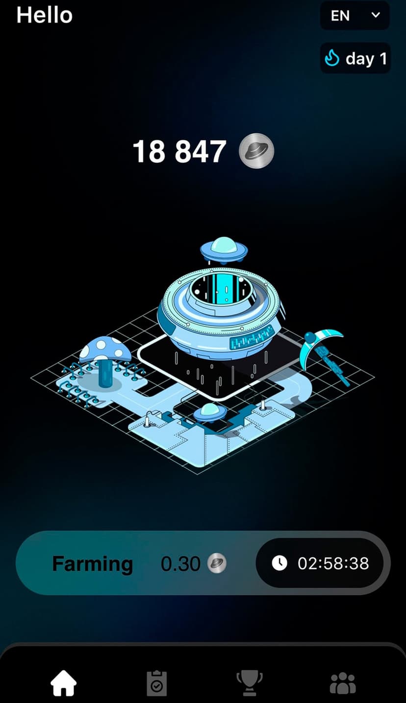 В личном профиле отображается прогресс и доступные задания. Интерфейс реализован в формате бота с минимальной интеграцией внешних сервисов, что обеспечивает быстрый старт и простую механику взаимодействия.
