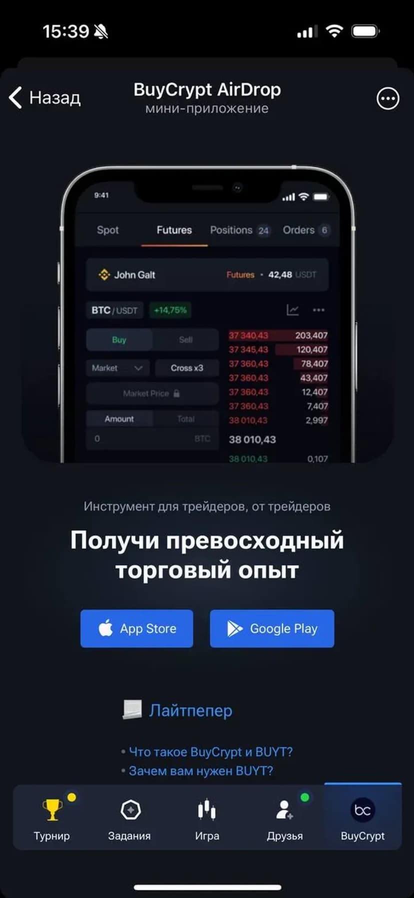 *Нажимая "Открыть в Telegram", вы перейдете к приложению BuyCrypt AirDrop в мессенджере Telegram