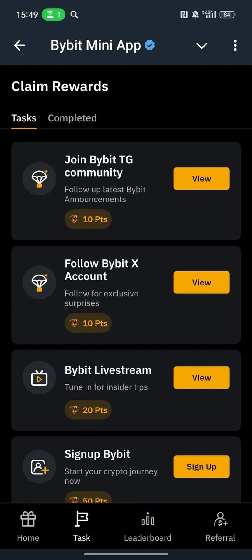 Bybit Mini App помогает новичкам и занятым пользователям постепенно знакомиться с криптовалютой: за ежедневный чек‑ин и простые задания начисляются баллы, которые можно обменять на реальные вознаграждения.