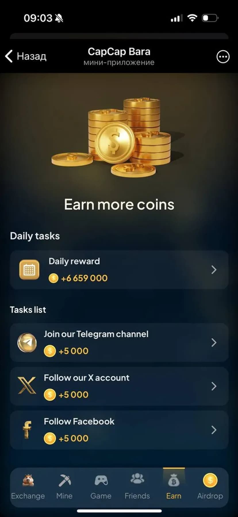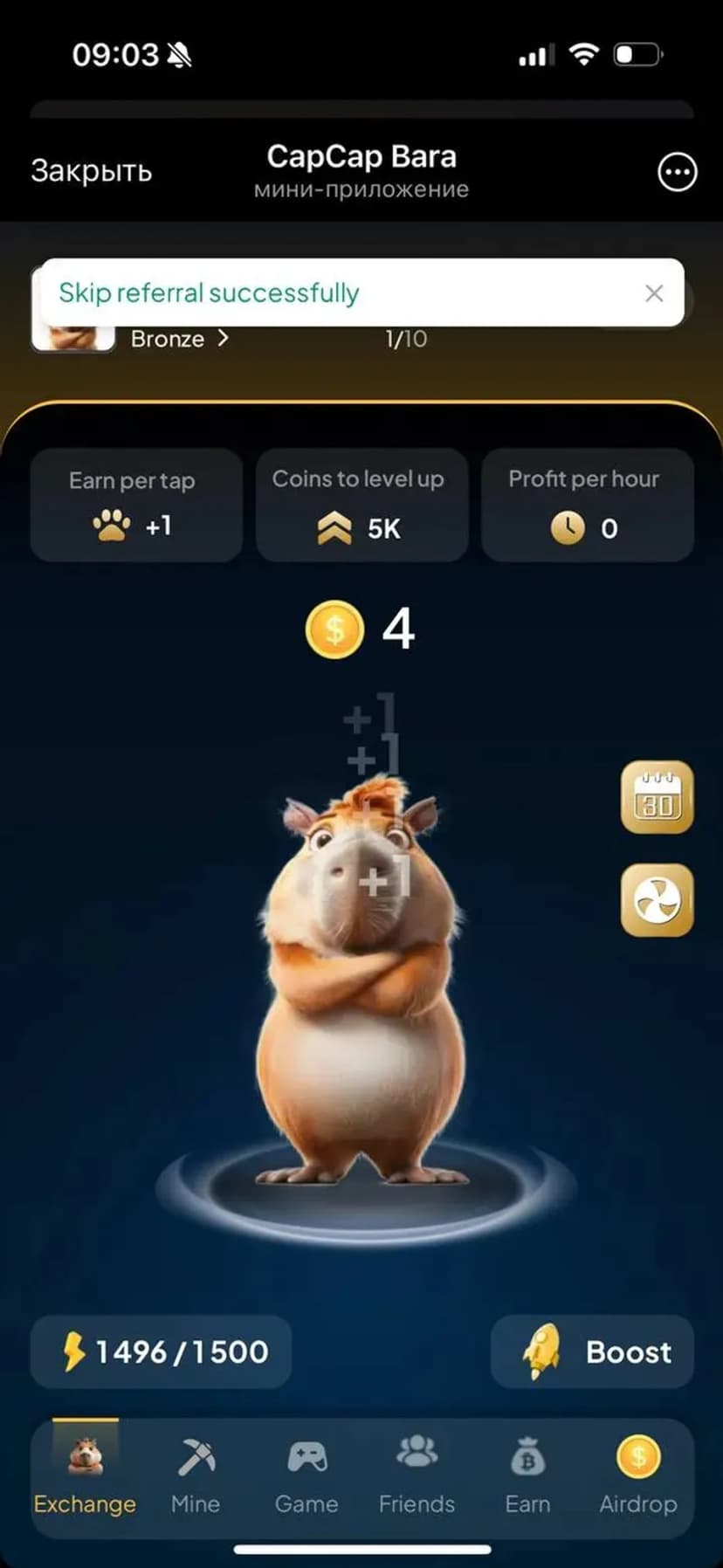 CapCap Bara сочетает экономическую стратегию и социальные механики внутри Telegram. Игрок начинает со стартового набора ресурсов и постепенно развивает источники дохода, увеличивая своё влияние в игре.