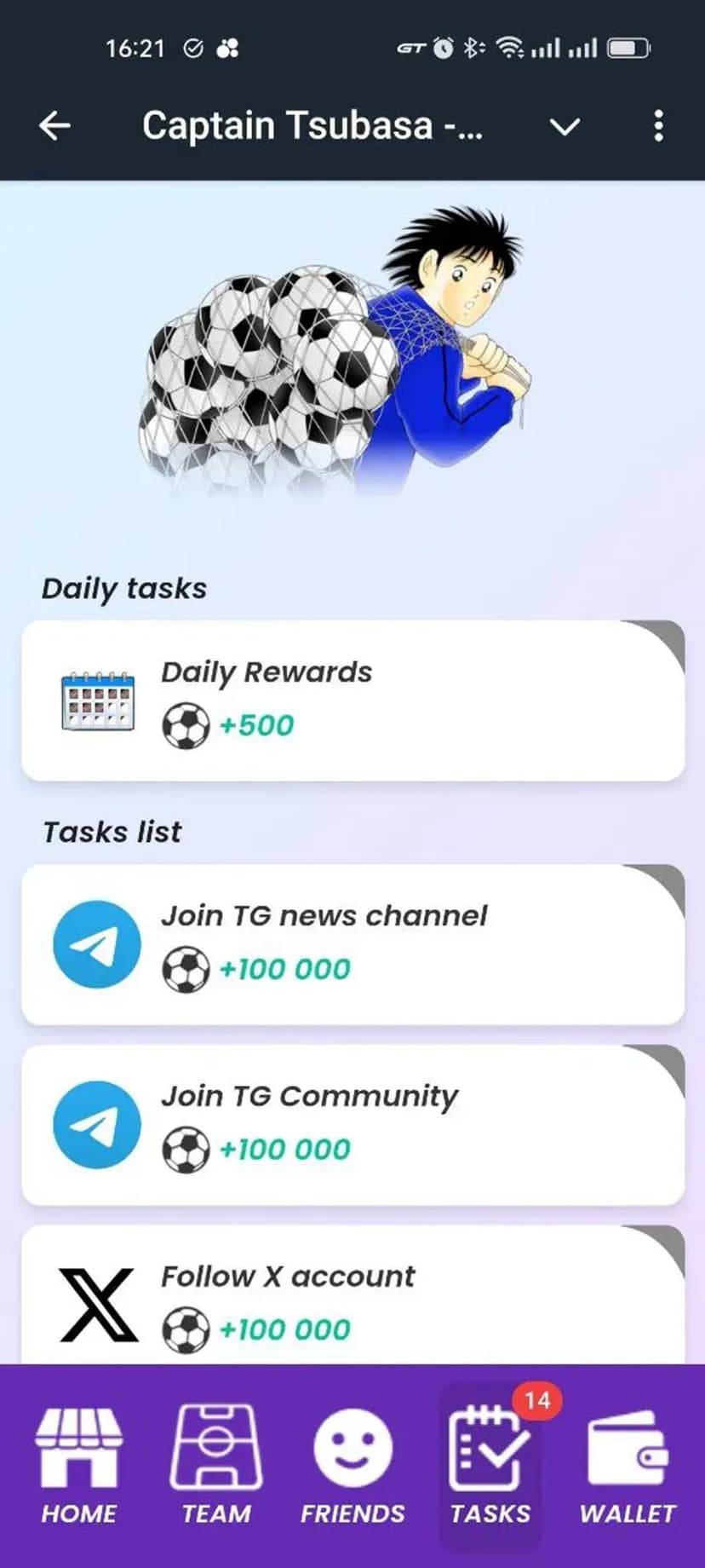 Captain Tsubasa -RIVALS- on TG — футбольная настольная стратегия в стиле tap-to-earn: собирайте мячи, прокачивайте команду и готовьтесь к будущим airdrop.