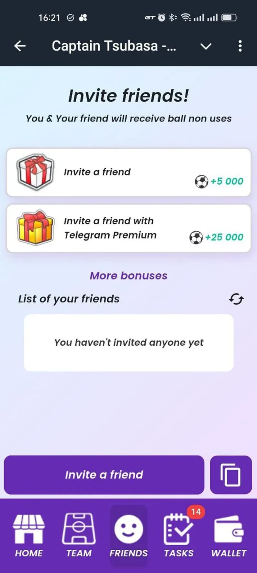 - Задания и соц-механики: выполнение заданий (включая соц-активности) и приглашение друзей увеличивает награды; приглашение даёт 5000 мячей (обычный аккаунт) или 25000 (Telegram Premium).