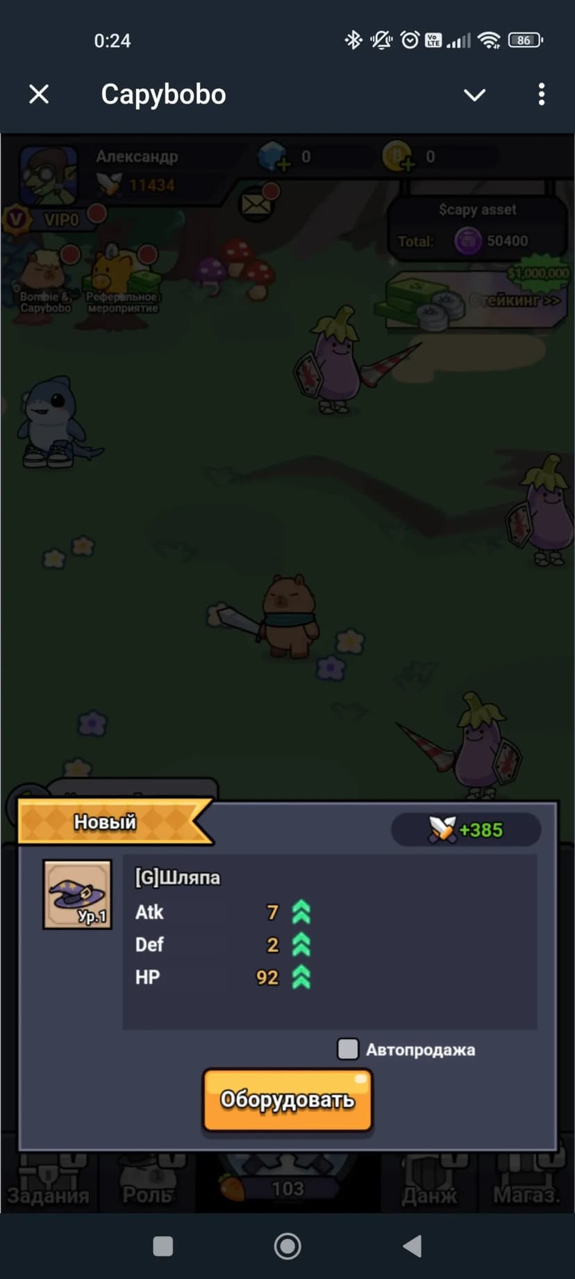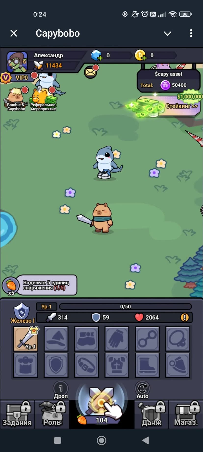 Idle-RPG с капибарами: автоматические бои, сбор ресурсов и стейкинг $BOMB