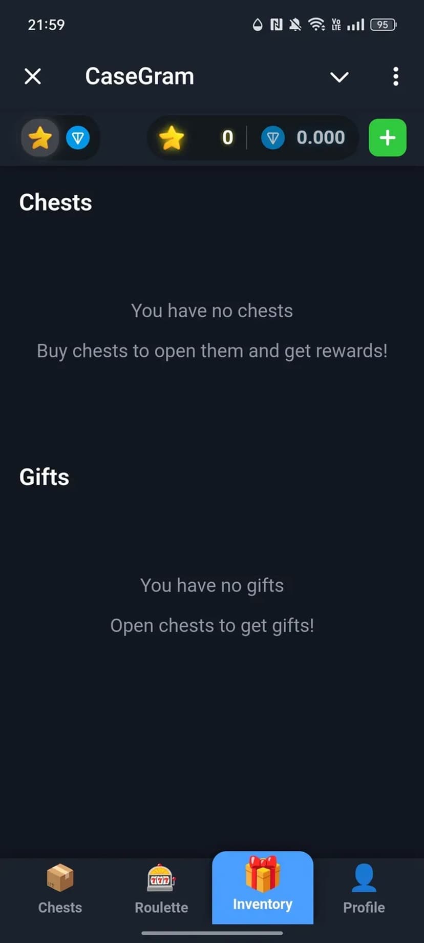 CaseGram — мини‑приложение внутри Telegram, позволяющее открывать кейсы и получать случайные подарки.