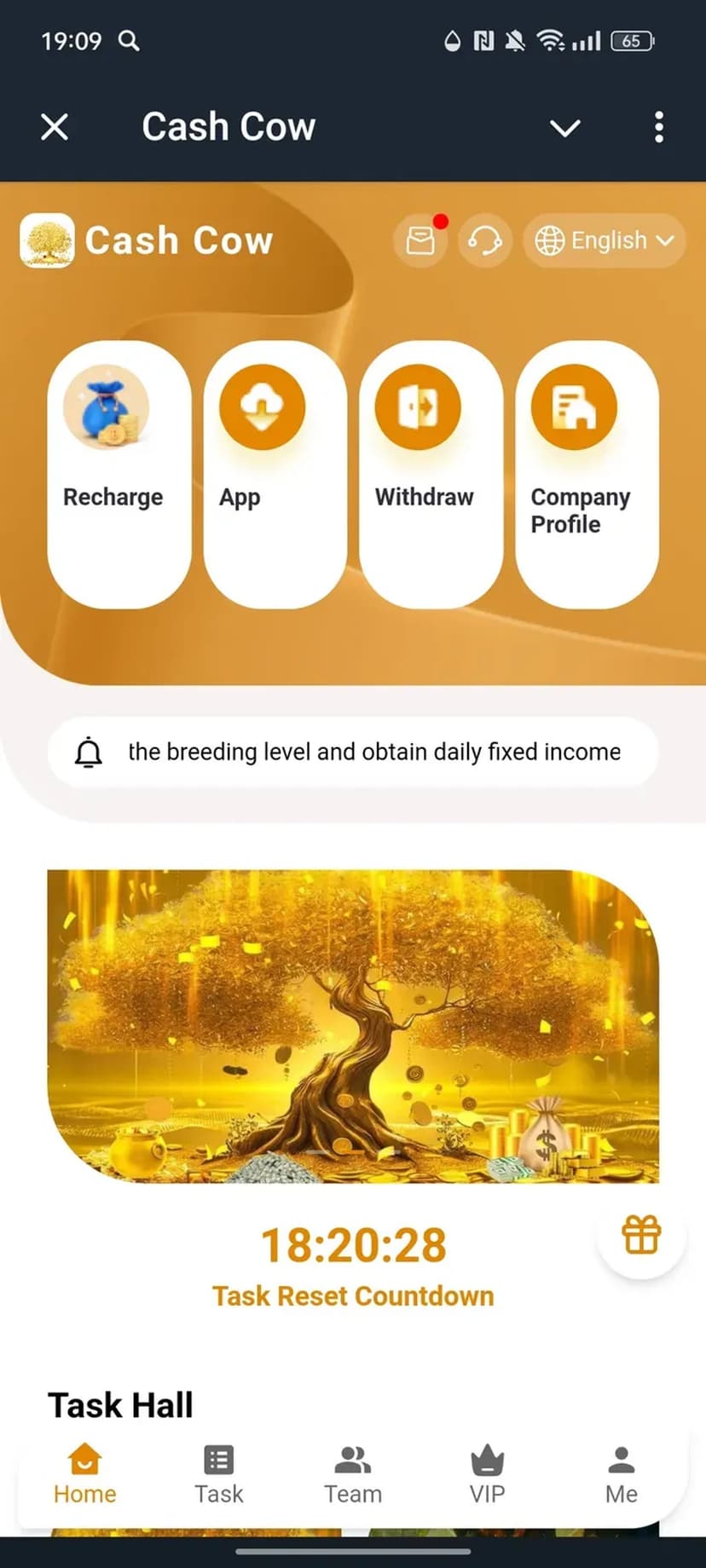 Cash Cow предлагает механику пассивного дохода через виртуальных коров: они приносят фиксированную ежедневную прибыль, а длительность «разведения» влияет на итоговый заработок.
