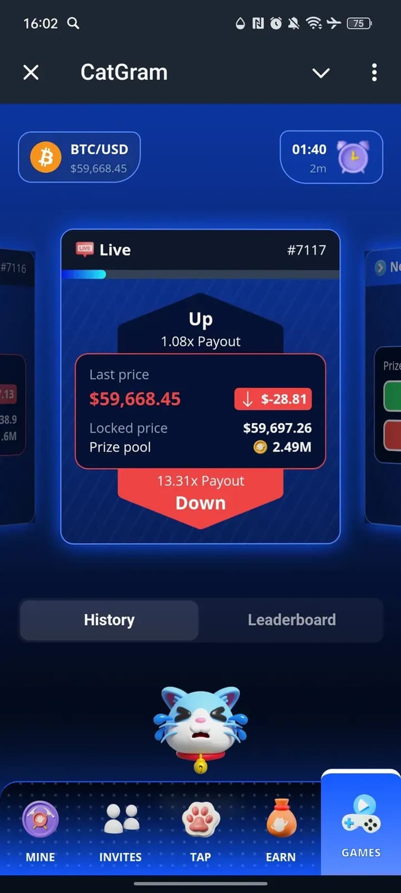 CatGram — мини‑игра, объединяющая простую механику кликера с элементами симулятора криптотрейдинга и обучающей платформы. Игроки нажатием на экран собирают виртуальные монеты, повышают доход и открывают возможности для пассивного заработка, одновременно получая практические инсайды из криптосообществ.