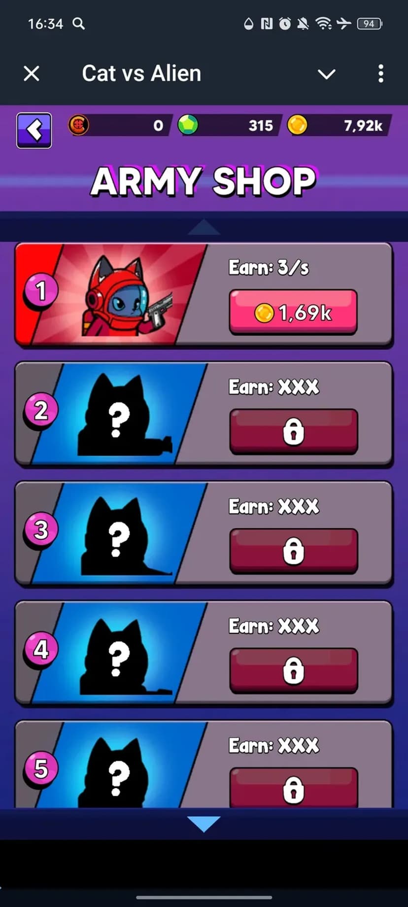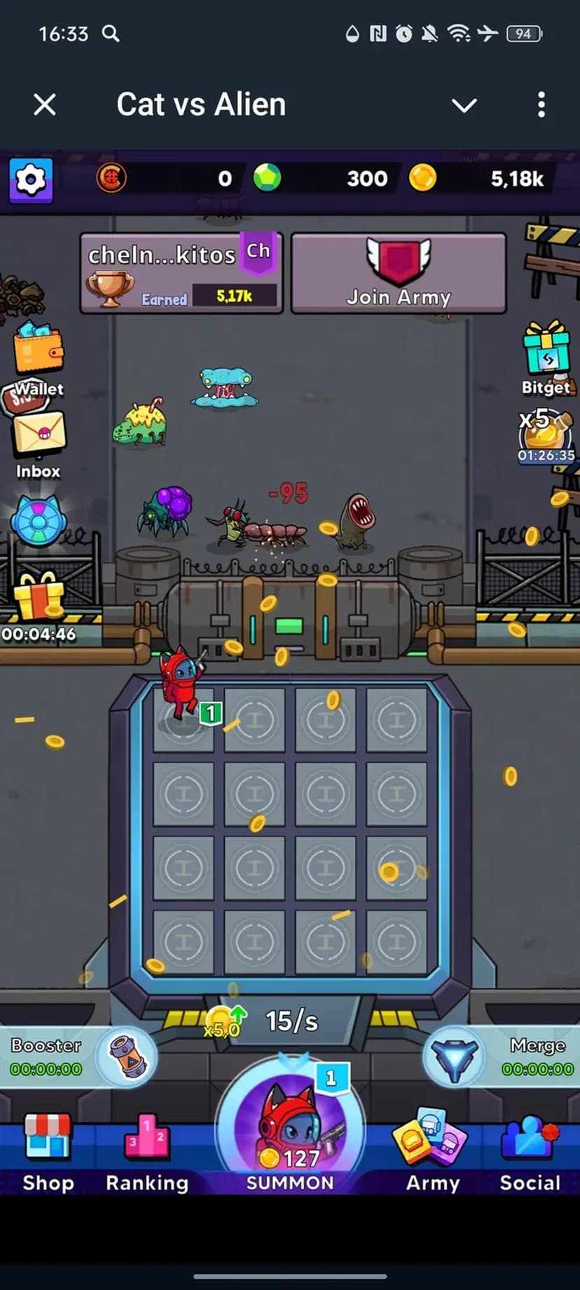 Cat vs Alien — гибрид merge и idle defense: расставляйте воинов-кошек на поле, объединяйте одинаковых бойцов для повышения уровня и сдерживайте волну инопланетных монстров.