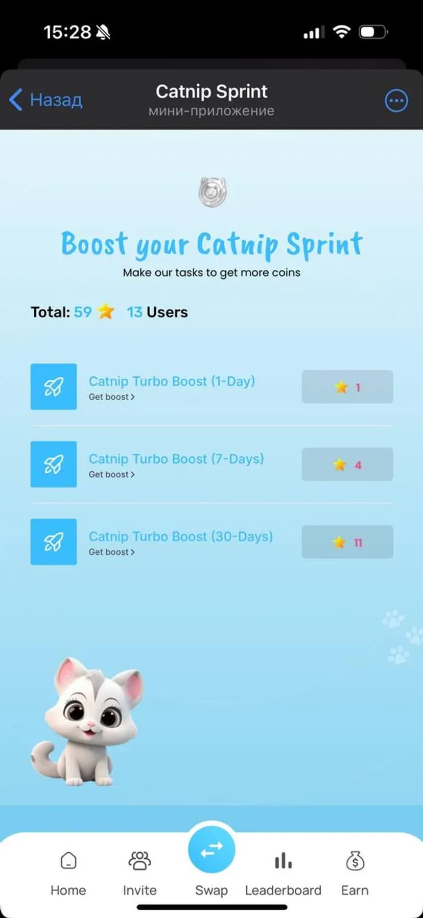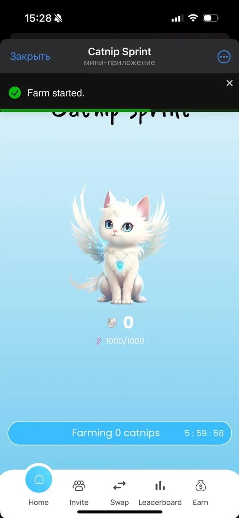 *Нажимая "Открыть в Telegram", вы перейдете к приложению Catnip Sprint в мессенджере Telegram
