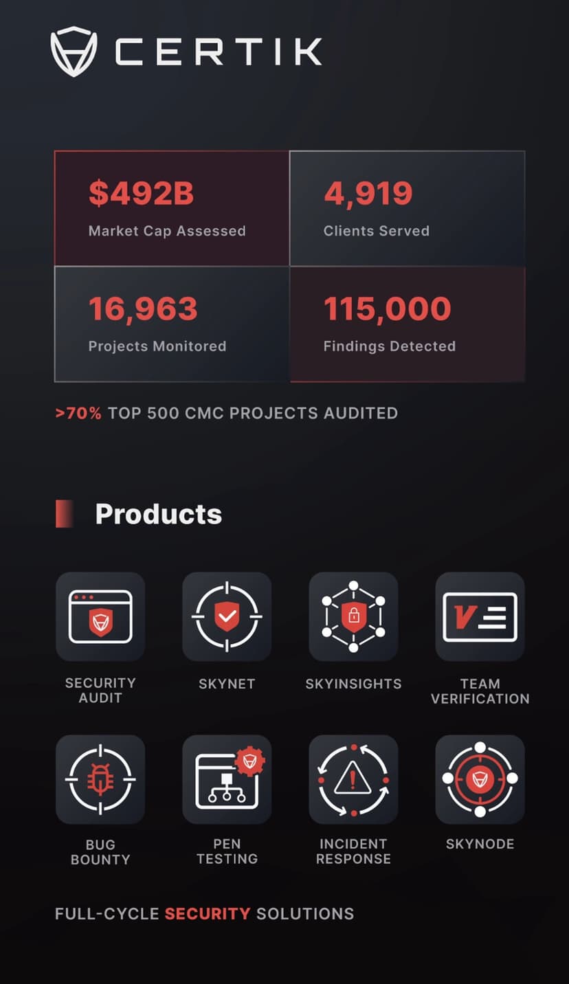 CertiK ориентирован на пользователей и разработчиков Web3, заинтересованных в защите смарт‑контрактов и децентрализованных приложений. При запуске предлагается структурированный интерфейс с быстрым доступом к основным новостям, аналитике по угрозам и отчетам по аудитам.