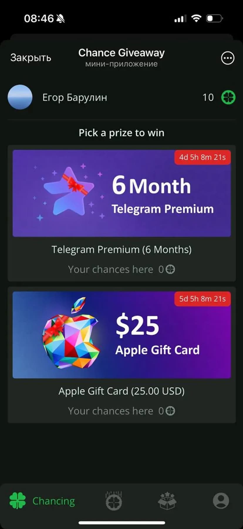 Chanceπ β Π³Π΅ΠΉΠΌΠΈΡΠΈΡΠΈΡΠΎΠ²Π°Π½Π½ΡΠΉ ΡΠ΅ΡΠ²ΠΈΡ Π² Telegram, Π³Π΄Π΅ Π²Π½ΡΡΡΠΈΠΈΠ³ΡΠΎΠ²ΡΠ΅ ΡΠΎΠΊΠ΅Π½Ρ $CHANCE ΠΈΡΠΏΠΎΠ»ΡΠ·ΡΡΡΡΡ Π΄Π»Ρ ΡΡΠ°ΡΡΠΈΡ Π² ΡΠΎΠ·ΡΠ³ΡΡΡΠ°Ρ Ρ ΡΠ΅Π°Π»ΡΠ½ΡΠΌΠΈ ΠΏΡΠΈΠ·Π°ΠΌΠΈ. ΠΡΠ΅ ΡΡΠ°Π½Π·Π°ΠΊΡΠΈΠΈ ΠΈ Ρ ΡΠ°Π½Π΅Π½ΠΈΠ΅ ΡΠΎΠΊΠ΅Π½ΠΎΠ² ΠΏΡΠΎΠΈΡΡ ΠΎΠ΄ΡΡ ΡΠ΅ΡΠ΅Π· Π±Π»ΠΎΠΊΡΠ΅ΠΉΠ½ TON, Π° Π²Π·Π°ΠΈΠΌΠΎΠ΄Π΅ΠΉΡΡΠ²ΠΈΠ΅ ΠΏΡΠΎΡ ΠΎΠ΄ΠΈΡ Π½Π΅ΠΏΠΎΡΡΠ΅Π΄ΡΡΠ²Π΅Π½Π½ΠΎ Π²Π½ΡΡΡΠΈ ΠΌΠ΅ΡΡΠ΅Π½Π΄ΠΆΠ΅ΡΠ°.