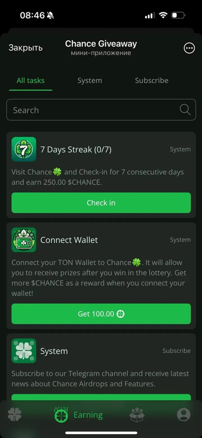 ΠΠ°ΡΠ°Π±Π°ΡΡΠ²Π°ΠΉΡΠ΅ $CHANCE Π½Π° TON ΠΈ ΡΡΠ°ΡΡΠ²ΡΠΉΡΠ΅ Π² Π»ΠΎΡΠ΅ΡΠ΅ΡΡ Ρ ΡΠ΅Π°Π»ΡΠ½ΡΠΌΠΈ ΠΏΡΠΈΠ·Π°ΠΌΠΈ