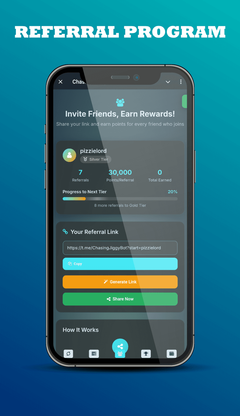 Chasing Jiggy — компактная play-to-earn игра, где персонаж пробегает по виртуальному городу Ruzz, преодолевая препятствия и получая внутриигровую валюту $JIGGY. Геймплей основан на Tap2earn: простые нажатия приносят очки и награды.