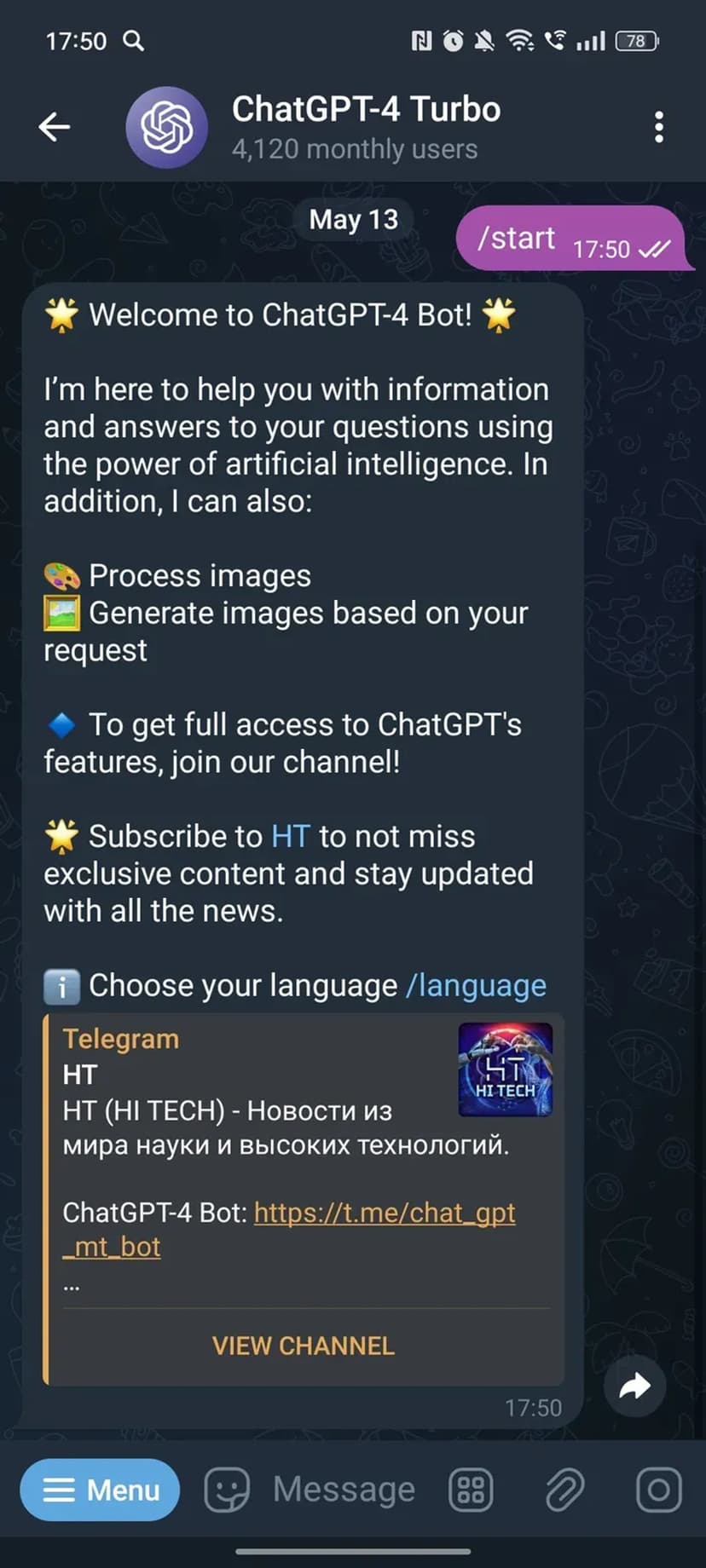 *Нажимая "Открыть в Telegram", вы перейдете к приложению ChatGPT-4 Turbo (@chat_gpt_mt_bot) в мессенджере Telegram
