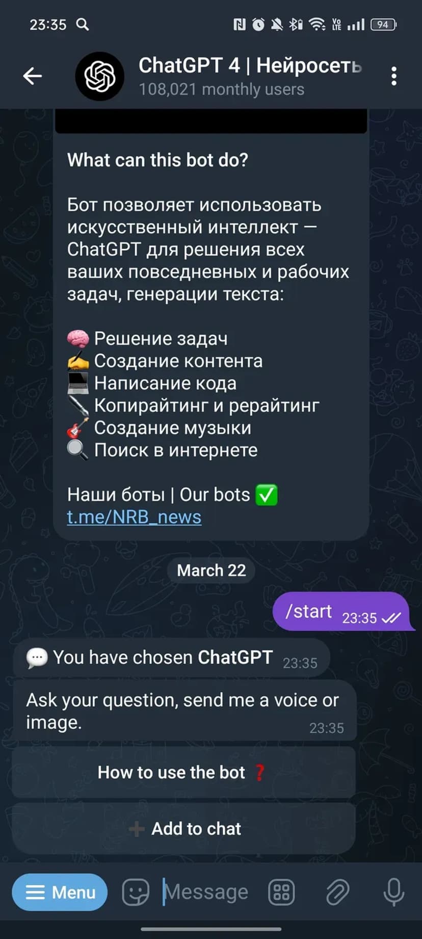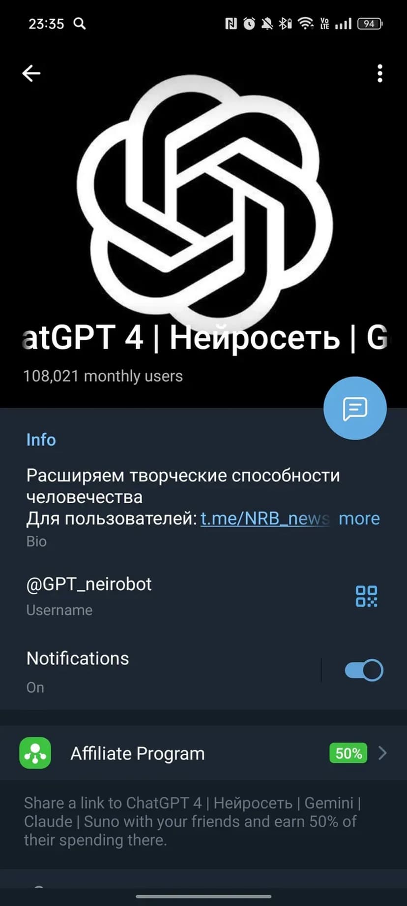 *Нажимая "Открыть в Telegram", вы перейдете к приложению ChatGPT AI Gemini Claude Suno в мессенджере Telegram