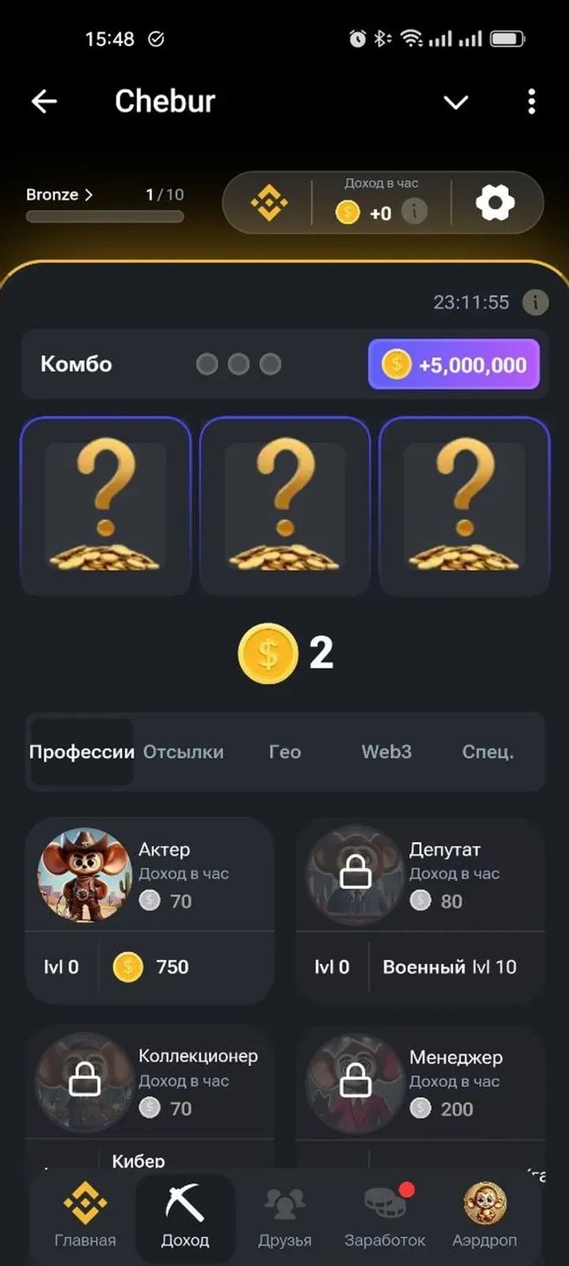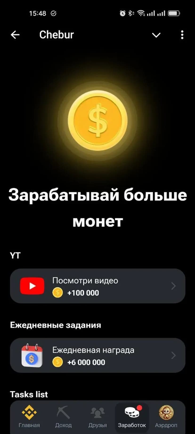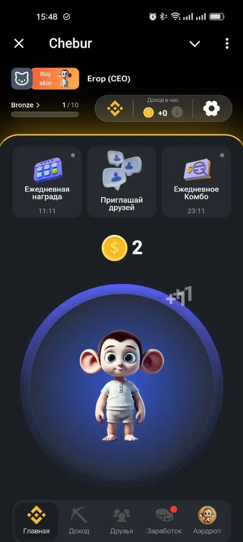 Кликер с заданиями и собственной цифровой валютой — зарабатывай Chebur Token