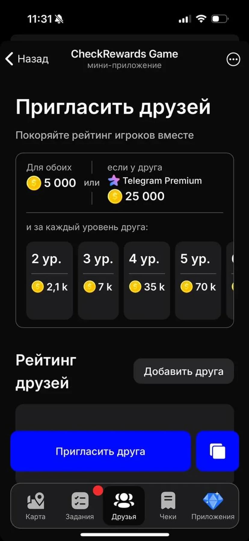 - Приглашайте друзей, чтобы увеличить пассивный доход через социальные механики.