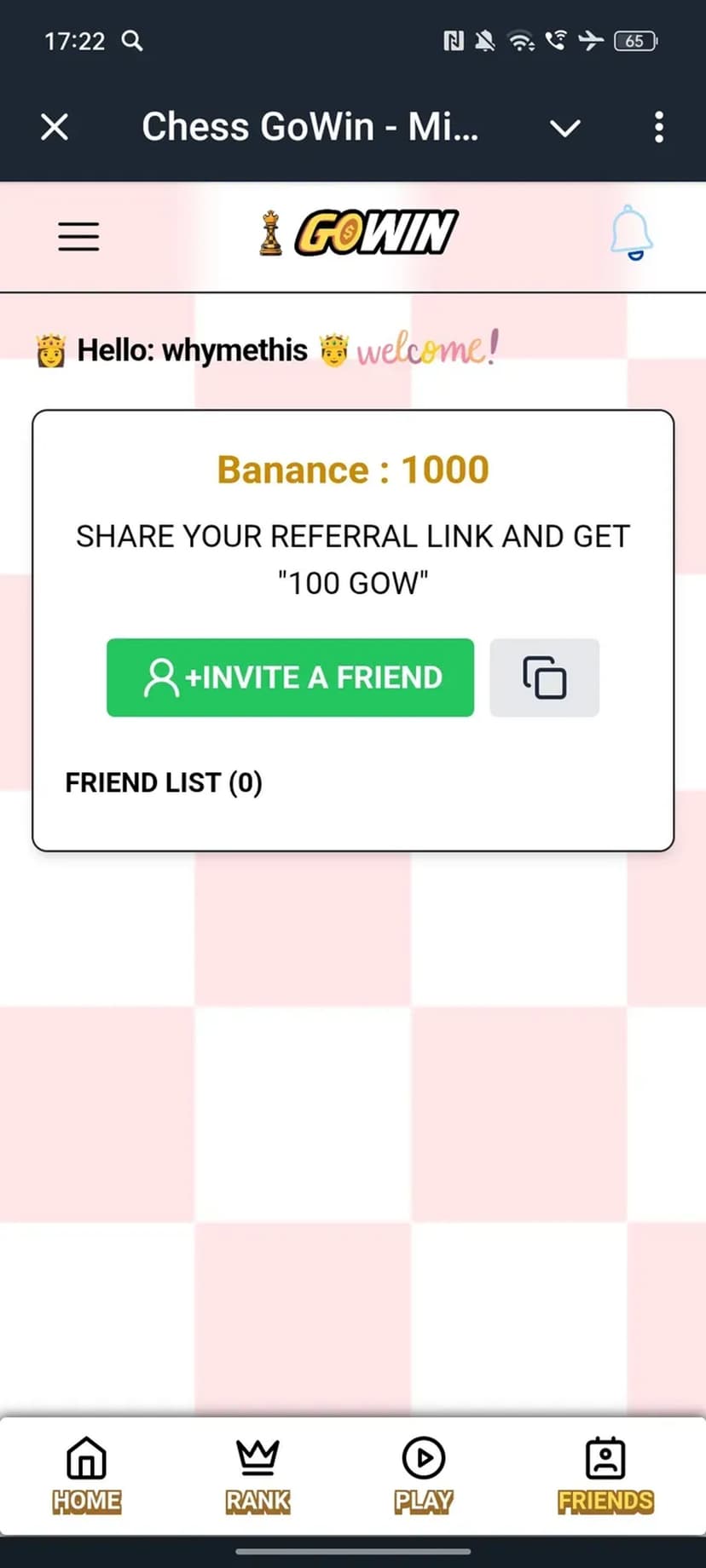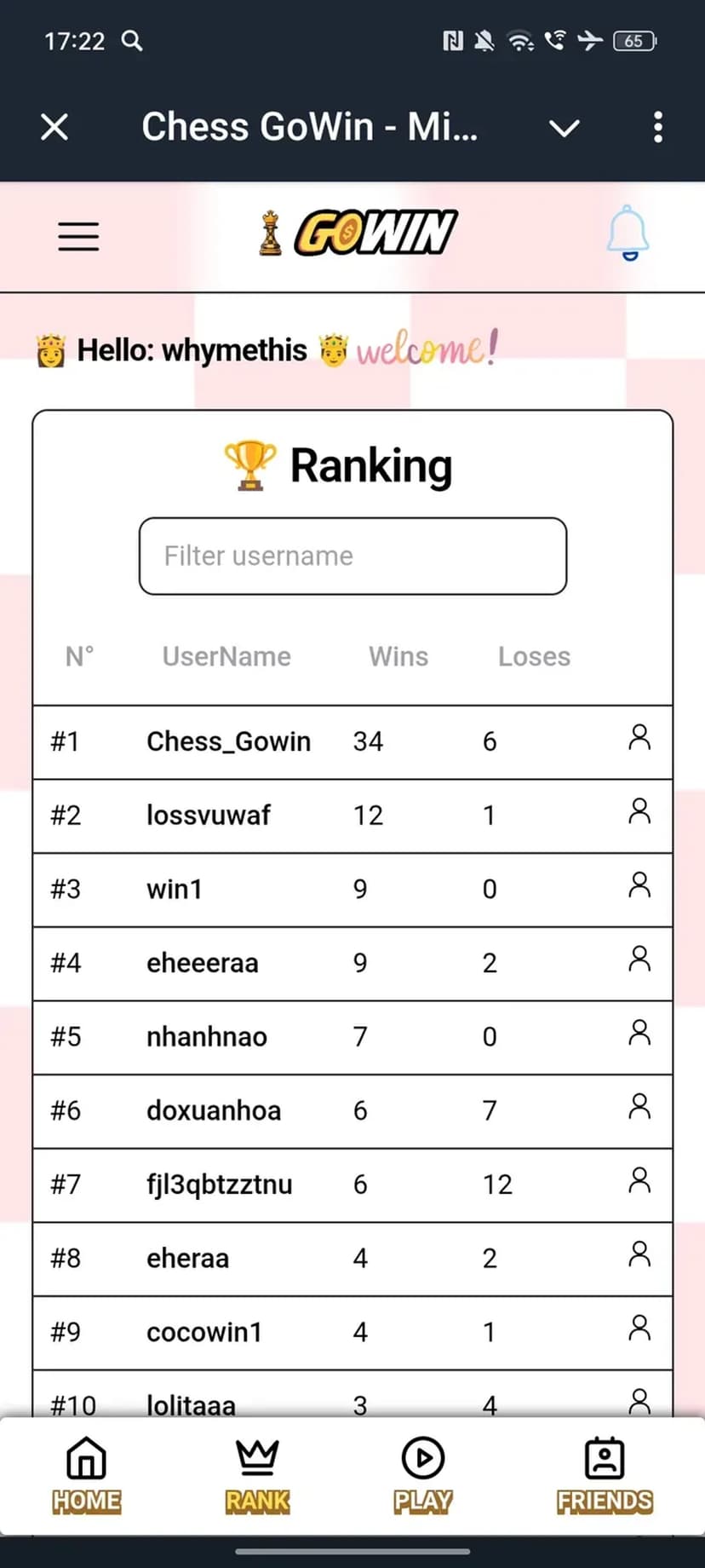 Chess GoWin - Mine $GOW — шахматная игра в Telegram с интегрированной игровой экономикой. Пользователи могут начинать партии с друзьями или случайными соперниками; доступны базовые шахматные инструменты: создание и поиск игр, быстрый старт и просмотр истории ходов.