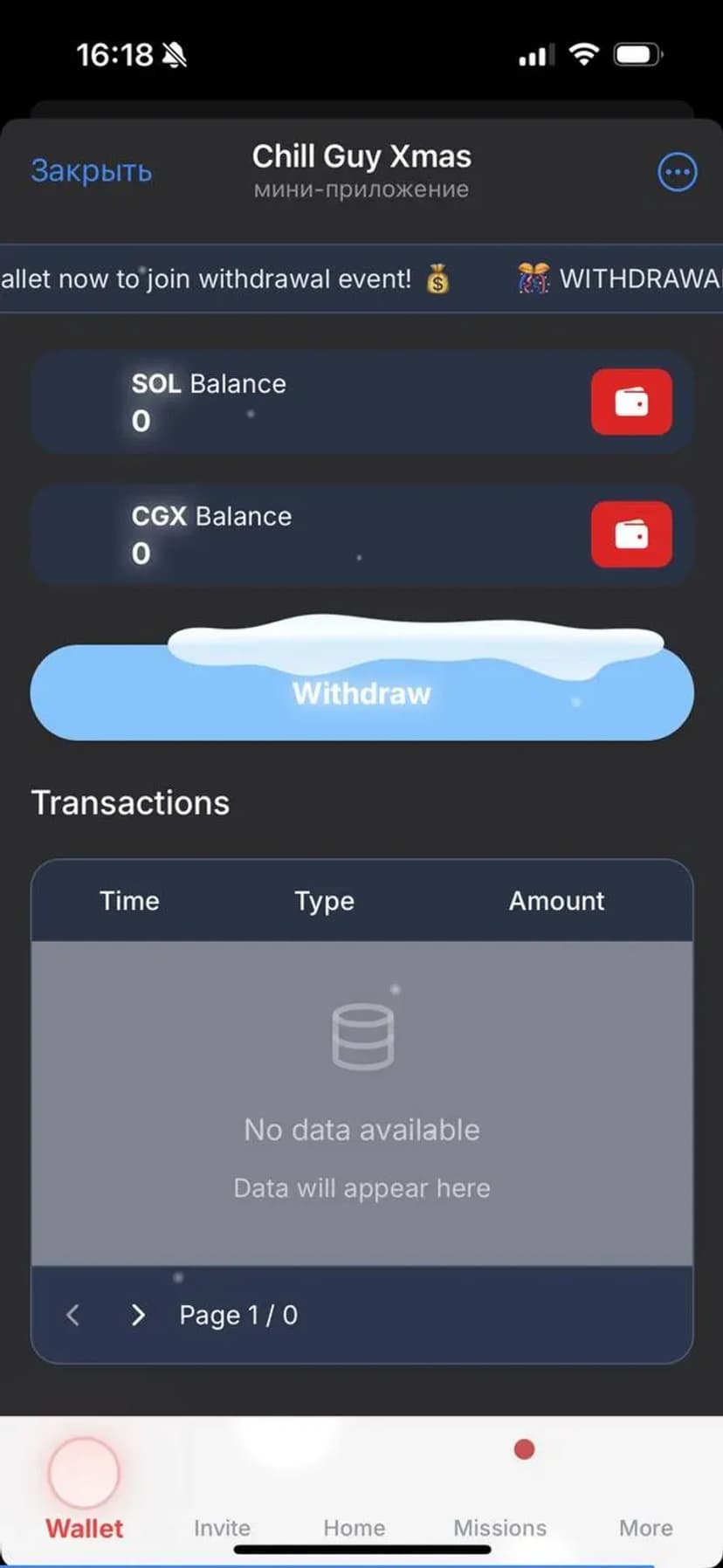 Chill Guy Xmas — геймифицированная платформа в формате play-to-earn внутри Telegram: выполняйте ежедневные миссии и приглашайте друзей, чтобы зарабатывать токены $CGX и получать выплаты в SOL.