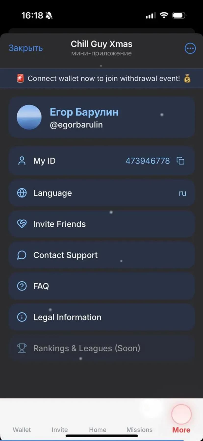 *Нажимая "Открыть в Telegram", вы перейдете к приложению Chill Guy Xmas в мессенджере Telegram