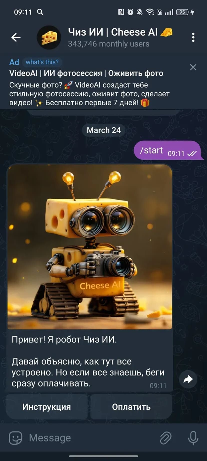 *Нажимая "Открыть в Telegram", вы перейдете к приложению Чиз ИИ | Cheese AI 🧀 в мессенджере Telegram