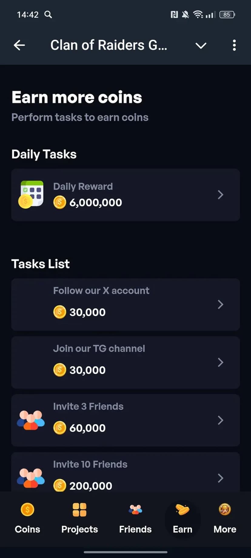 - Разнообразные задания: тап по экрану, приглашение друзей, активность в социальных сетях.