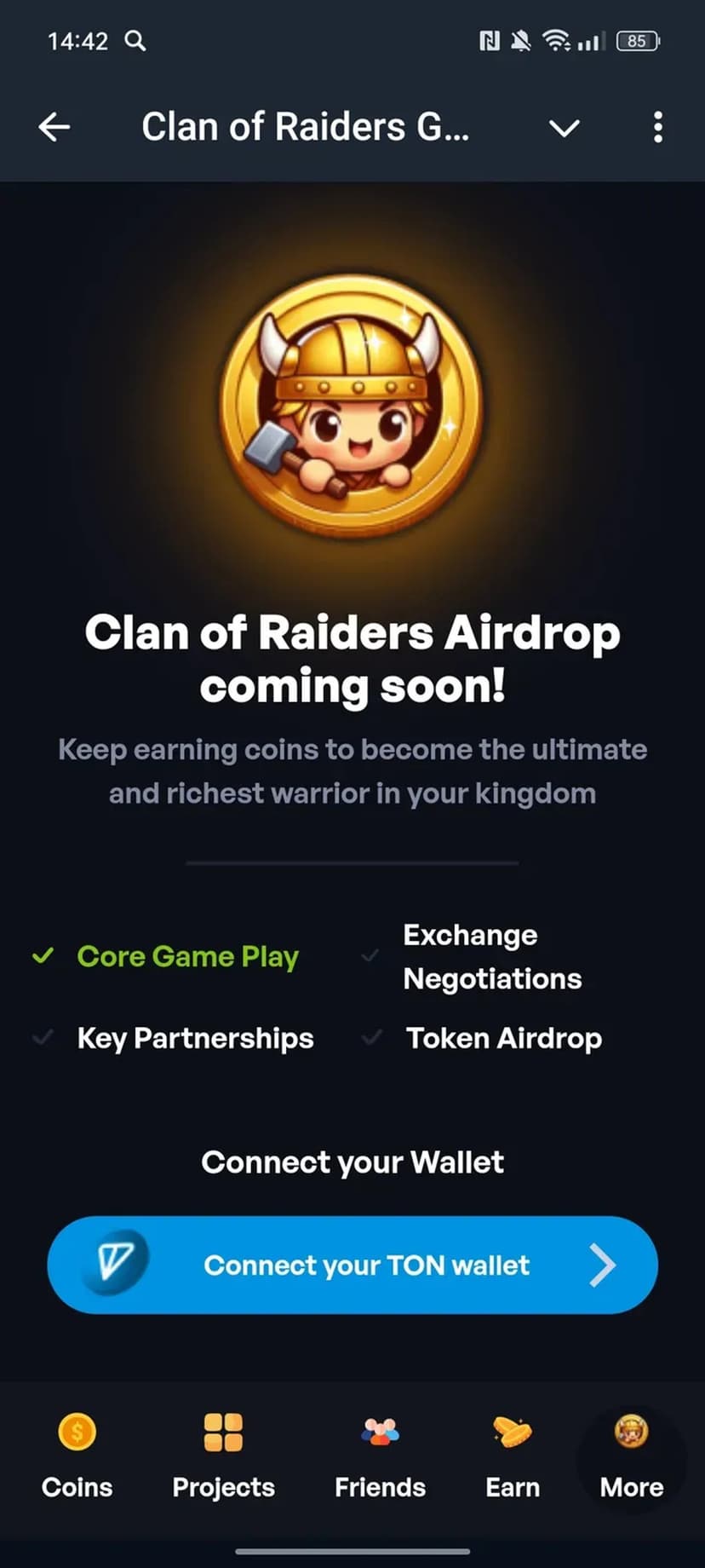 Clan of Raiders Game — геймифицированное участие в airdrop‑акциях: вступай в команду рейдеров, выполняй задания и накапливай токены, которые позже можно будет обменять на реальные криптоактивы.