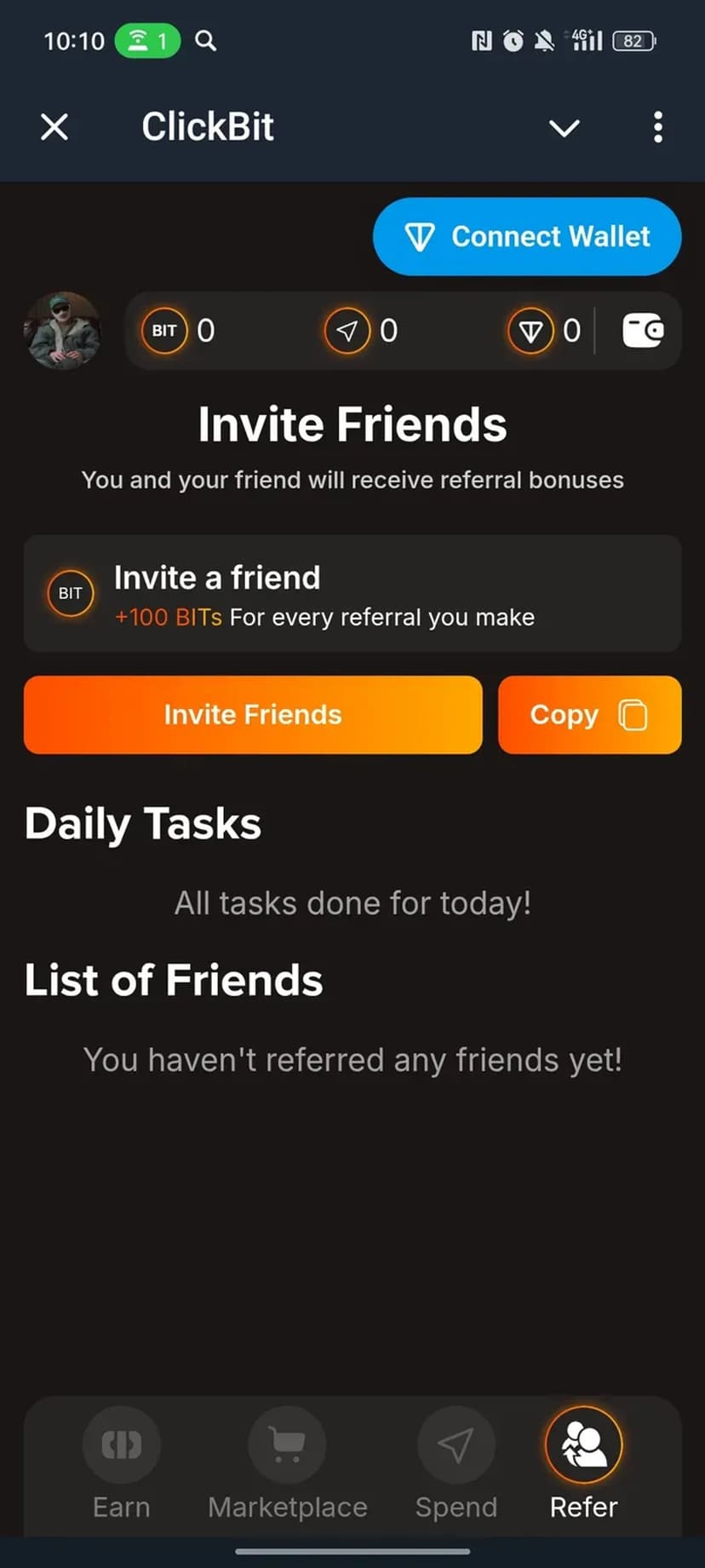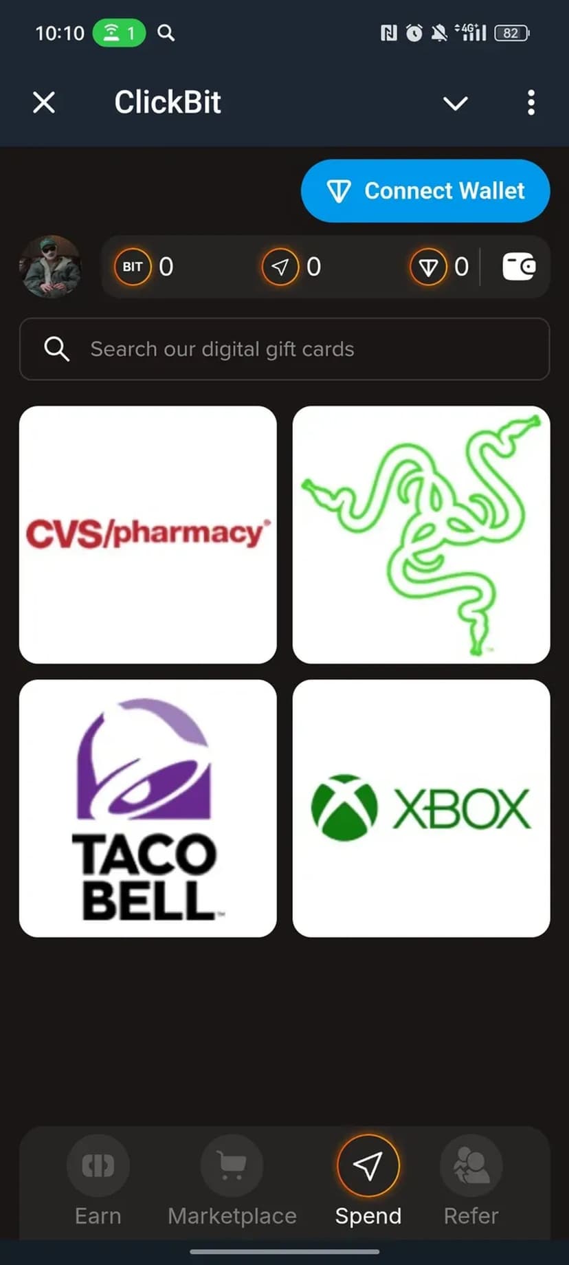 ClickBit — удобный сервис в Telegram для быстрого старта с NFT: бесплатно минтить токены, выполнять задания, накапливать вознаграждения и обменивать их на подарочные карты.