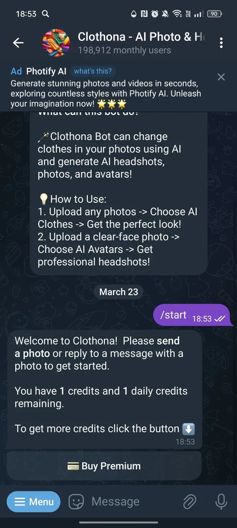 *Нажимая "Открыть в Telegram", вы перейдете к приложению Clothona - AI Photo & Headshot Generator в мессенджере Telegram