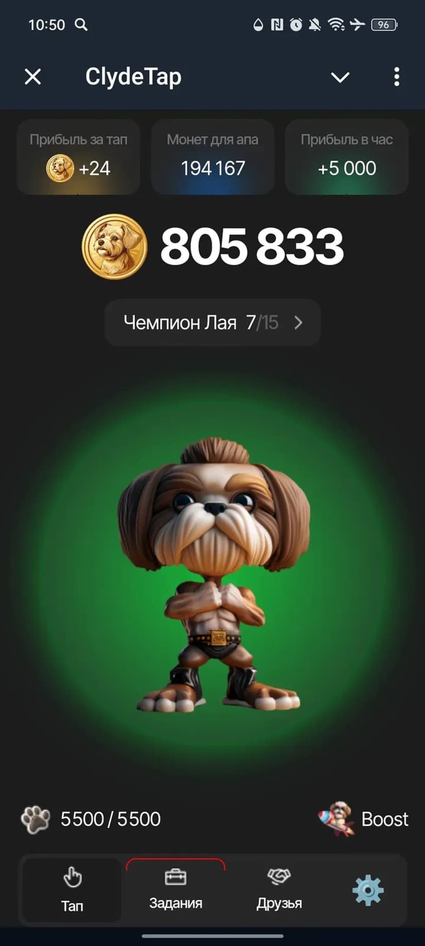 С ClydeTap вы кликаете по экрану, получаете внутриигровую валюту Wclade и прокачиваете питомца — ши‑тцу. Игра сочетает простую механику кликера с заданиями, системой вознаграждений и соревновательными элементами.