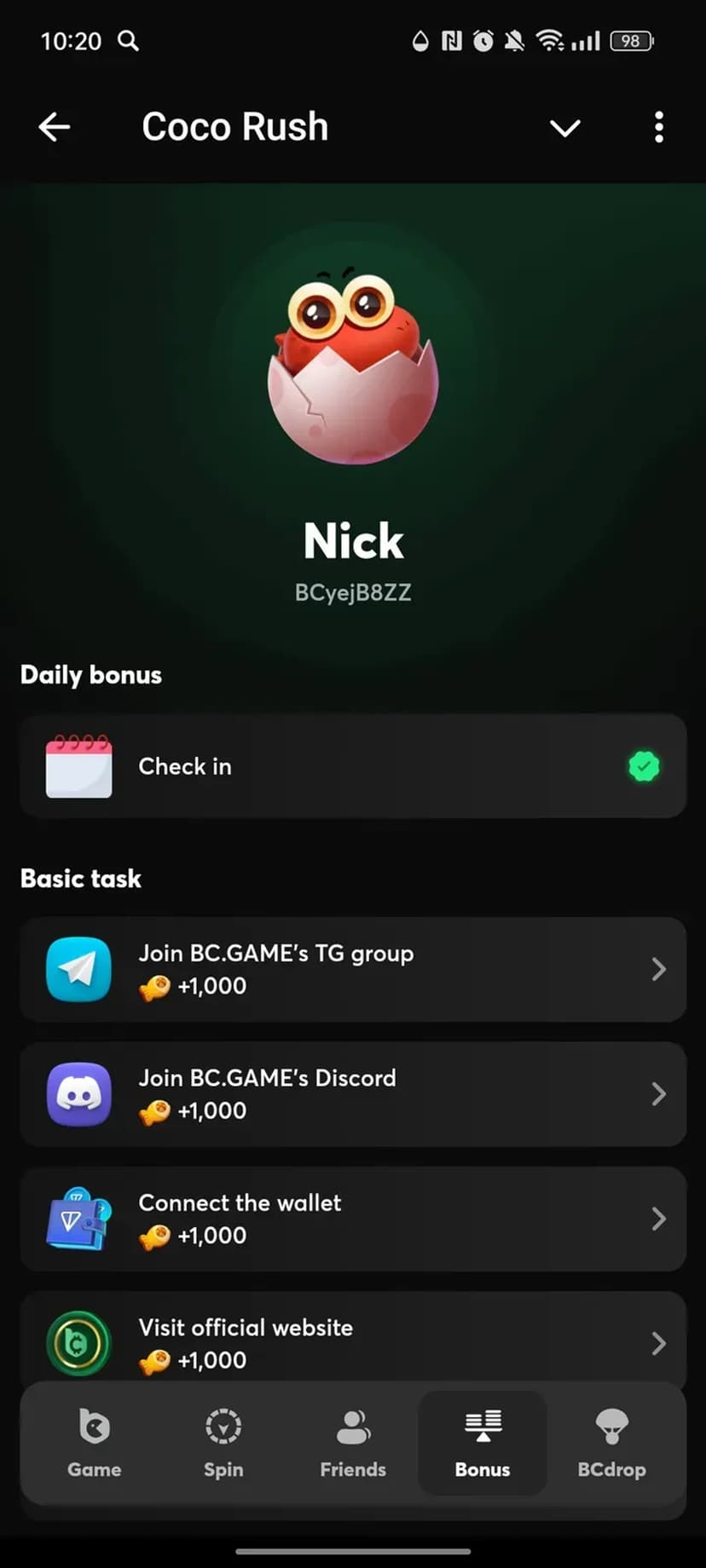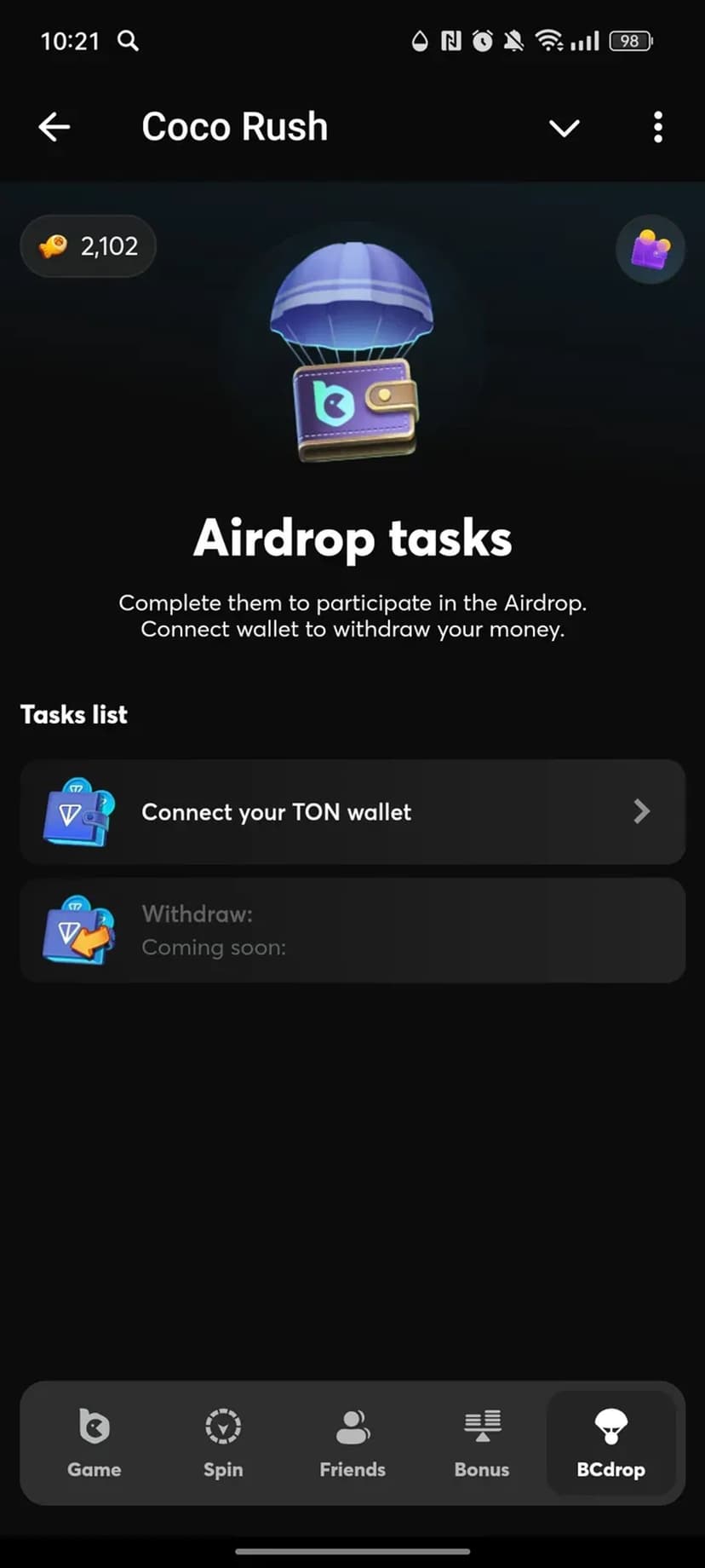 - Лидерборды: активные игроки могут попасть в список для потенциального airdrop токенов $BC.